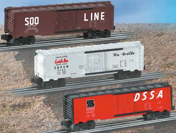 Archive Collection #6464 Boxcar 3-Pack #1 3-Pack #1 includes:#6464-625 Soo Line, #6464-750 Denver & Rio Grande Western "Cookie Box" and 6464-775 Duluth, South Shore & Atlantic SKU: 6-39242 Dimensions: Length: 10 1/4" Gauge: Traditional O Gauge price: 114.99 year: 2003 rail line: Mixed Road Names Minimum Radius: O-27 Catalog Year: 2004 Catalog Title: Classic Trains Vol. 1 2004 Road Number: None FEATURES: Die-cast metal sprung trucks and operating couplers Opening doors Metal frames Manuals Find the latest manuals in our support section. Replacement Parts Buy any replacement parts in our support section. Contact Contact a service station to fix your product
