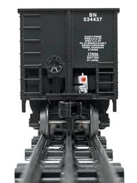 Unit coal trains provide one of the most important resources in railroading. Seemingly endless strings of coal cars carry their load of black diamonds to power plants around the country. Out west, the mighty Burlington Northern reigned supreme. They favored the aluminum bathtub gondola, such as those built by Johnstown America, for coal hauling as they saved weight yet did not sacrifice strength. They used powerful diesel locomotives like the SD-70MAC to pull their unit coal trains across Big Sky country.The SD-70MAC is a 4,000 horsepower brute that proved well-suited to haul a mile long train. General Motors introduced the SD-70MAC in 1992. The scale-sized TMCC-equipped Lionel version of this modern freighter includes the Odyssey System for speed control and the RailSounds sound system featuring some of the most realistic diesel locomotive effects in O gauge railroading. The brilliant green paint scheme includes sharp graphics and accurate readable warning stencils.Each bathtub gondola features the revolutionary Lionel rotary coupler. When used with the Lionel Rotary Coal Tipple operating accessory (see Lionel Classic Trains vol. 1 2002), the bathtub gondolas function just like the prototype. Without uncoupling, each car is rotated and unloaded. In the tradition of modern caboose-less railroading, a flashing red End-of-Train-Device is mounted on the rear of the last car.
