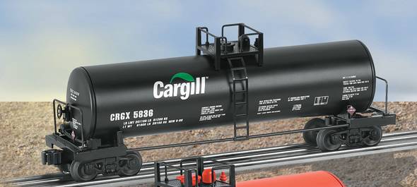 Cargill Unibody Tank Car #5836 Lionel Standard O Rolling Stock is scale-sized and inspired by the designs of freight car companies like ACF and Johnstown America. Each car is loaded with sharply engraved and separately applied details. Even the tiny type of warning stencils is crisp and clear. From our new aluminum ACF hoppers to the legendary Lionel Milk Cars, every piece of Lionel Standard O Rolling Stock is built tough to ride the rails for generations. SKU: 6-17926 Dimensions: Length: 11 1/8" Gauge: Standard O Scale price: 54.99 year: 2002 rail line: Cargill Minimum Radius: O-31 Catalog Year: 2003 Catalog Title: Classic Trains Vol. 2 2003 Road Number: 5836 FEATURES: Die-cast metal sprung trucks and operating couplers Die-cast metal top platforms, frame ends and air cylinders Metal handrails, ladders and warning placards Manuals Find the latest manuals in our support section. Replacement Parts Buy any replacement parts in our support section. Contact Contact a service station to fix your product