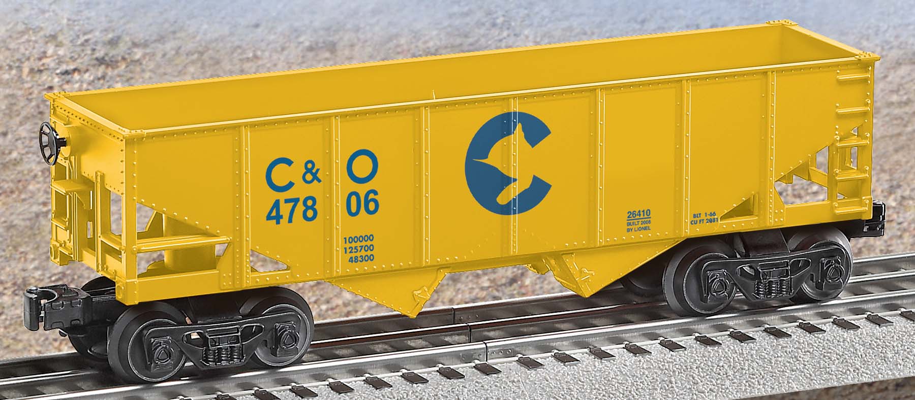 Chessie System Hopper None SKU: 6-26410 Dimensions: Length: 9 1/2" Gauge: Traditional O Gauge price: 34.99 year: 0 rail line: Chessie System Minimum Radius: None Catalog Year: 2008 Catalog Title: Lionel 2008 Train Catalog Volume 2 Road Number: None Features: Operating couplers—uncouple cars automatically with a remote-control or uncoupling track section Manuals Find the latest manuals in our support section. Replacement Parts Buy any replacement parts in our support section. Contact Contact a service station to fix your product