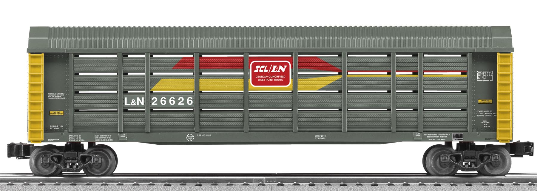 Chessie System Merger Freight Car Add-on 2-Pack Add a SCL auto carrier and a CSX tool car to your Chessie Merger set. Lighting SKU: 6-30138 Dimensions: Length: Auto Carrier: 13 ¾” Tool Car: 11 ¼” Gauge: Traditional O Gauge price: 119.99 year: 0 rail line: Mixed Road Names Minimum Radius: O-31 Catalog Year: 2011 Catalog Title: Lionel 2011 Signature Edition Road Number: None Features: Die-cast metal sprung trucks and operating couplers Interior illumination in tool car Each car individually boxed Minimum Curve: Auto Carrier: O-31 / Tool Car: O-27 Manuals Find the latest manuals in our support section. Replacement Parts Buy any replacement parts in our support section. Contact Contact a service station to fix your product