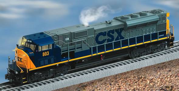 CSX LionMaster TMCC SD80MAC #803 The SD-80MAC represents the pinnacle of modern EMD power. With a high horsepower rating and over 180,000 lbs. of starting tractive effort, these brute diesels haul long lines of cargo over some of the steepest grades. Fully featured, TMCC-equipped model of these Special Duty brutes is selectively proportioned to better match traditional-sized Lionel rolling stock and smaller-sized layouts. ElectroCouplers Lighting Odyssey System RailSounds Smoke Unit TrainMaster Command Control SKU: 6-28203 Dimensions: Length: 17 1/2" Gauge: Traditional O Gauge price: 349.99 year: 2003 rail line: CSX Minimum Radius: O-31 Catalog Year: 2004 Catalog Title: Classic Trains Vol. 1 2004 Road Number: 803 LionMaster SD-80/SD-90 Diesel Locomotive - 6/03 CSX LM SD80MAC - Parts List - 2003 FEATURES: TrainMaster Command Control equipped—able to run in Command Control Mode or in Conventional Transformer Control Mode RailSounds sound system with CrewTalk communication and TowerCom announcements Odyssey System for speed control Directional lighting including LED headlights and operating classification lights Two ElectroCouplers Dual powerful maintenance-free motors with momentum flywheels Four traction tires Fan-driven smoke unit Die-cast metal pilots, trucks and fuel tank Metal frame Separately applied metal details Lighted number boards Lighted cab interior Engineer figures Manuals Find the latest manuals in our support section. Replacement Parts Buy any replacement parts in our support section. Contact Contact a service station to fix your product