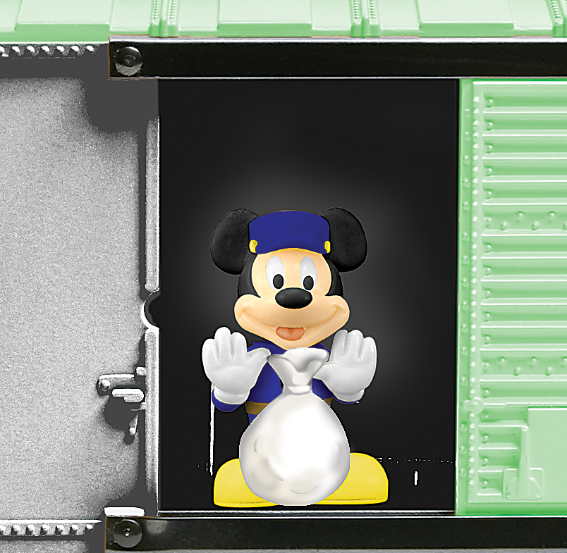 Disney Operating Boxcar Mickey Mouse makes a special delivery, unloading a bundle at the press of a button. A remote control or uncoupling track section is required (Sold separately). Action SKU: 6-36783 Dimensions: Length: 10 1/2" Gauge: Traditional O Gauge price: 64.99 year: 2004 rail line: None Minimum Radius: O-27 Catalog Year: 2005 Catalog Title: Classic Trains Vol. 2 2005 Road Number: None FEATURES: Die-cast metal sprung trucks and operating couplers Animated figure with detachable bundle Opening doors Custom Disney packaging Manuals Find the latest manuals in our support section. Replacement Parts Buy any replacement parts in our support section. Contact Contact a service station to fix your product