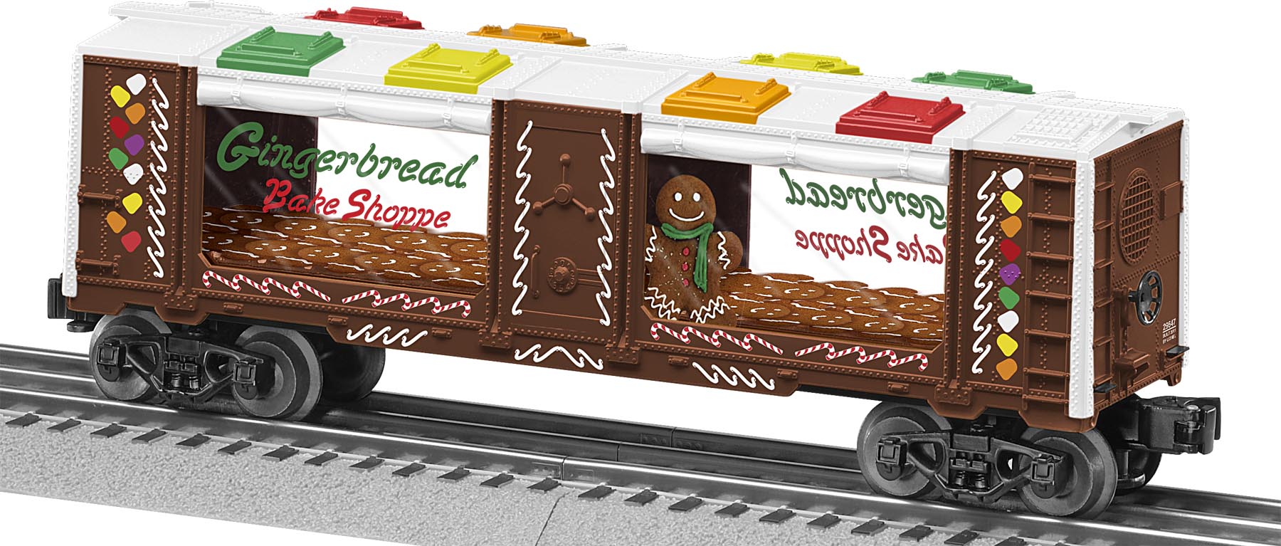 Gingerbread Man Mint Car The Gingerbread Man is up to his tricks aboard this hadsome mint car. SKU: 6-29647 Dimensions: Approx. 10 1/4” Gauge: Traditional O Gauge price: 69.99 year: 0 rail line: None Minimum Radius: O-27 Catalog Year: 2011 Catalog Title: A Christmas Tradition 2011 Road Number: None Die-cast metal sprung trucks and operating couplers Gingerbread figure and load Metal frame Manuals Find the latest manuals in our support section. Replacement Parts Buy any replacement parts in our support section. Contact Contact a service station to fix your product
