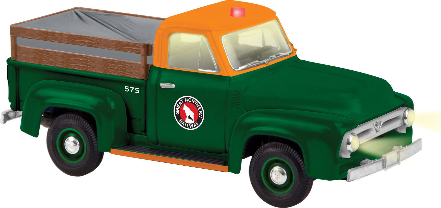 Great Northern Command Control Pick-Up Truck #575 Command Control-equipped 1955 pick-up truck ready for Maintenance of Way duty around your layout. Lighting TrainMaster Command Control SKU: 6-39535 Dimensions: Length: Approx. 6” Gauge: Standard O Scale price: 179.99 year: 2013 rail line: Great Northern Minimum Radius: O-27 Catalog Year: 2013 Catalog Title: Lionel 2013 Signature Edition Road Number: 575 1955 MOW Truck 3/13 Command Control equipped – able to run in Command Control Mode or in Conventional Transformer Control Mode Powerful maintenance-free motor Forward and reverse operation Operating headlights Flashing strobe light on roof 1:48 Scale model Detailed die-cast metal body and frame Manuals Find the latest manuals in our support section. Replacement Parts Buy any replacement parts in our support section. Contact Contact a service station to fix your product