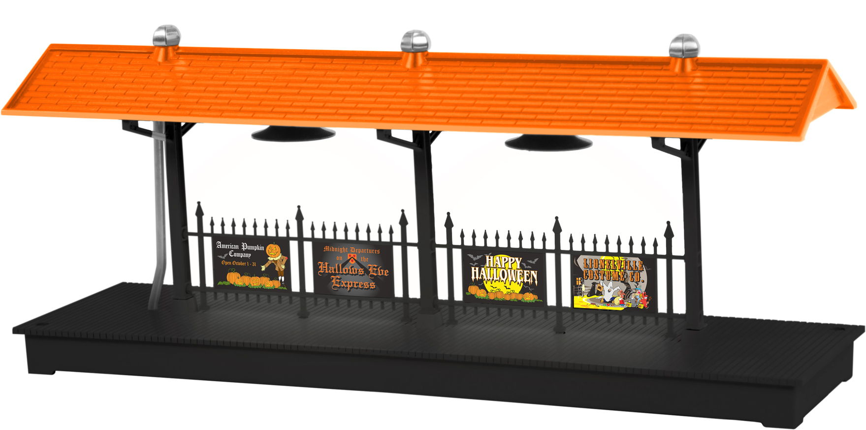 Halloween Station Platform Add a spooky stop for the ghosts and goblins to disembark on your layout. Lighting SKU: 6-37954 Dimensions: Dimensions: 12” x 3 3⁄8” x 5” Gauge: Traditional O Gauge price: 34.99 year: 0 rail line: None Minimum Radius: O-27 Catalog Year: 2013 Catalog Title: Lionel 2013 Fall Catalog Road Number: None ILLUMINATED HALLOWEEN STATION PLATFORM - 3/11 Two frosted light bulbs Decorated billboards on fence Manuals Find the latest manuals in our support section. Replacement Parts Buy any replacement parts in our support section. Contact Contact a service station to fix your product