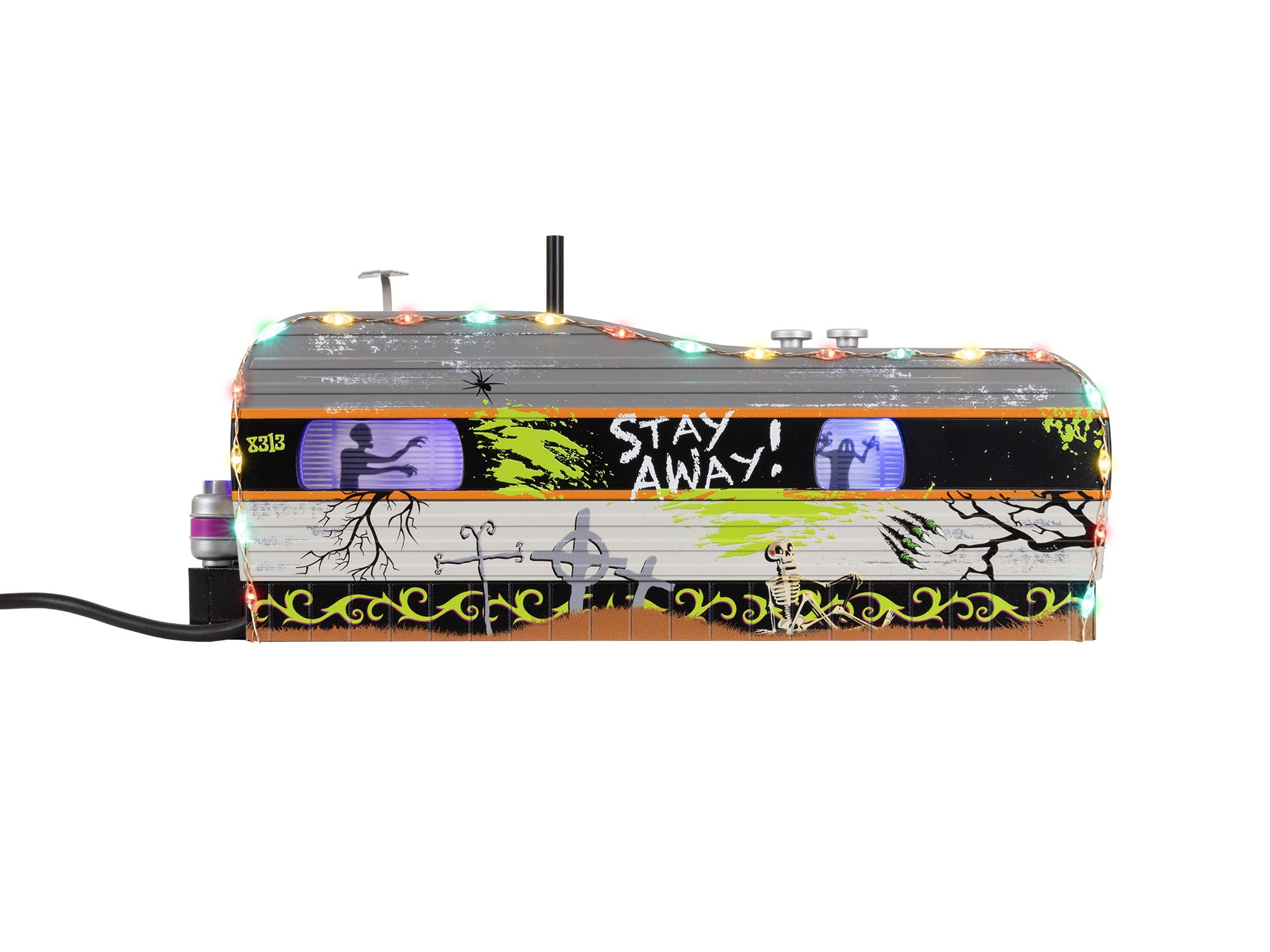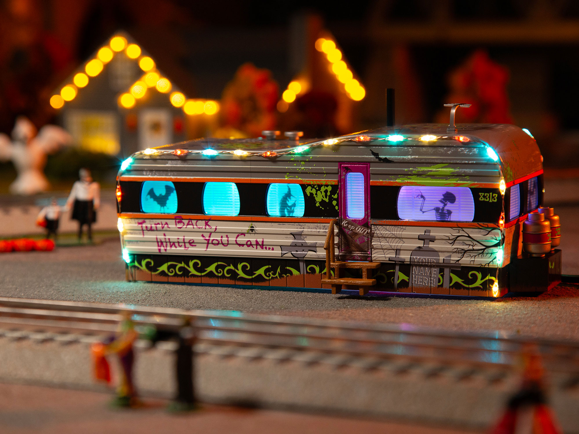 Halloween Trailer Home No track layout is complete without some cool accessories. Add to the atmosphere of your train layout with these new themed mobile homes, complete with fun decorations, and working interior LED lights! SKU: 2529200 Dimensions: Dimensions - 7 3/4" x 3 1/8" x 3 1/2" Gauge: O Gauge Power: Pull & Play Manuals Find the latest manuals in our support section. Replacement Parts Buy any replacement parts in our support section. Contact Contact a service station to fix your product