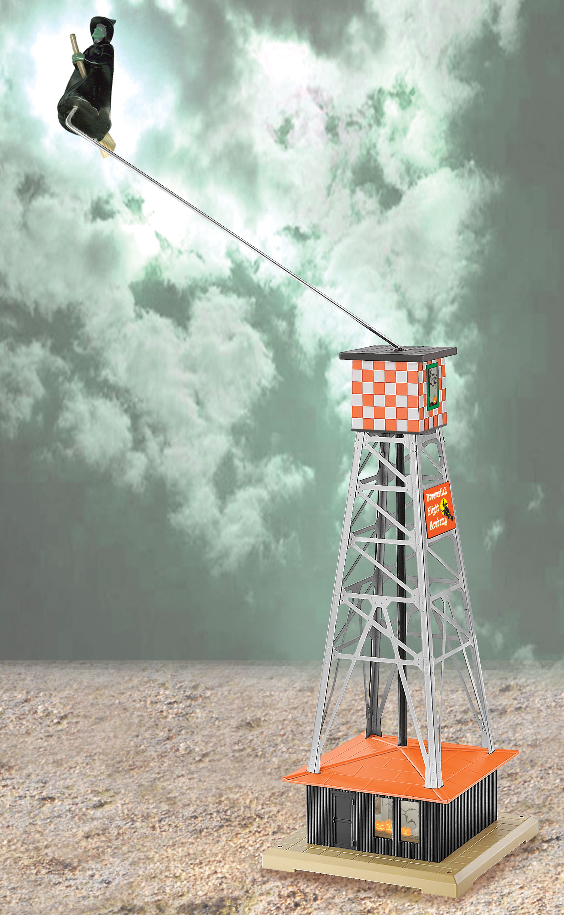 Halloween Witch Pylon The Broomstick Flying Academy has a busy schedule in the weeks before Halloween! Witches are flying everywhere, perfecting the art of soaring and dipping on broomsticks until their skills are just right for the long flight on Halloween night. Keep your eyes on the sky on that special eve ... they may be stopping at your house with mischief and magic for you and your family. Action Lighting SKU: 6-14297 Dimensions: 5 3/4” x 5 3/4” x 14 1/4” Gauge: Traditional O Gauge price: 139.99 year: 2007 rail line: None Minimum Radius: None Catalog Year: 2008 Catalog Title: Lionel 2008 Ready-to-Run Catalog Road Number: None WITCH PYLON None Powerful, maintenance-free motor Metal tower Interior lighting Witch flies approximately 21 1/2” above the base Manuals Find the latest manuals in our support section. Replacement Parts Buy any replacement parts in our support section. Contact Contact a service station to fix your product