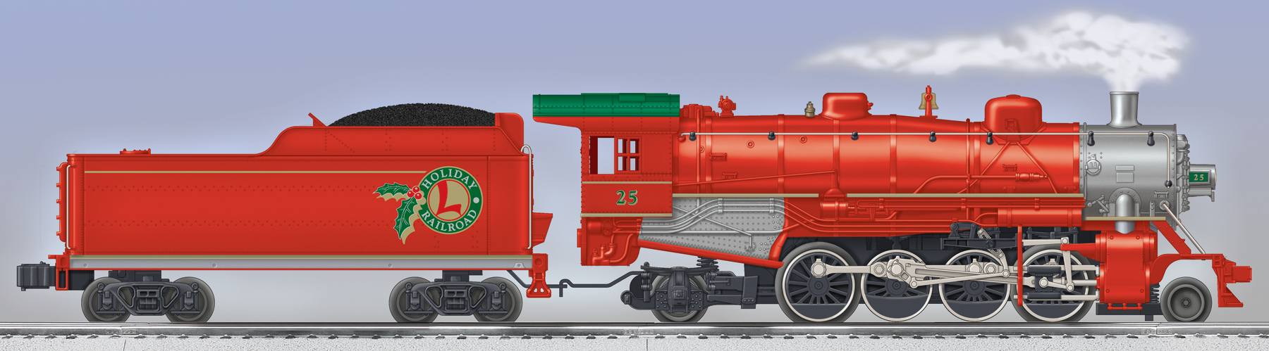 HOLIDAY RAILROAD 2-8-2 MIKADO JR (RED) #25 Decorated in bright Christmas colors, these powerful 2-8-2 Mikado steam locomotives are ready for duty on your railroad. Operate them with any standard transformer and enjoy the excitement of conventional RailSounds. Lighting RailSounds Smoke Unit SKU: 6-28699 Dimensions: Length: 19” Gauge: Traditional O Gauge price: 259.99 year: 0 rail line: None Minimum Radius: O-27 Catalog Year: 2008 Catalog Title: Lionel Signature Catalog 2008 Volume 1 Road Number: 25 FEATURES: Transformer controlled forward, neutral, and reverse operation Conventional RailSounds sound system with synchronized chuffing, crew announcement, brake squeal, steam whistle, and bell Powerful maintenance-free motor with momentum flywheel Operating headlight Die-cast metal locomotive body, frame, and trucks Operating coupler on rear of tender Traction tires Puffing smoke unit Engineer and fireman figures Die-cast metal tender body and trucks Manuals Find the latest manuals in our support section. Replacement Parts Buy any replacement parts in our support section. Contact Contact a service station to fix your product