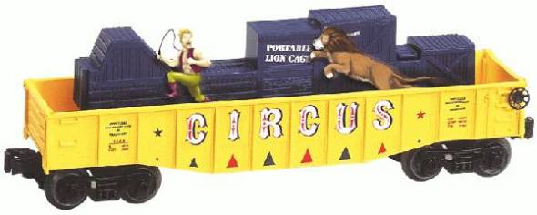Being a trainer of animals can be fun and rewarding, but it also has its dangerous side. You will watch in wonderment as the circus lion chases his trainer around this colorful gondola. Will he catch him and show up on the next installment of "When Animals Attack," or will the crafty trainer stay one step ahead? Put this car on the tracks and find out!