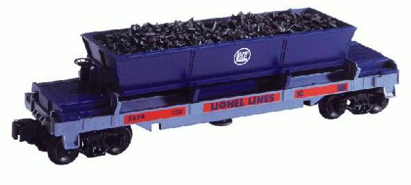 Add some fun and play value to your layout with the Lionel Lines Coal Dump Car. Pull your train up alongside the receiving bin, push a button and watch the coal fly! Decorated in the colors of good ol' Lionel, it will look great on any layout.