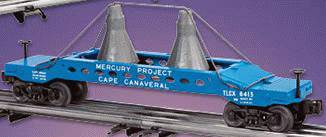 Lionel O27 Flat Car w/Mercury Capsules #6413 (PWC) During the Postwar years, Lionel Flatcars carried some of your favorite vehicles, from submarines and rockets to construction equipment. SKU: 6-26026 Dimensions: Length: 11" Gauge: Traditional O Gauge price: 49.95 year: 2002 rail line: Lionel Lines Minimum Radius: O-27 Catalog Year: 2002 Catalog Title: Classic Trains Vol. 1 2002 Road Number: 6413 Mecury Capsule Carrying Car - 1/02 Die-cast metal sprung trucks Manuals Find the latest manuals in our support section. Replacement Parts Buy any replacement parts in our support section. Contact Contact a service station to fix your product