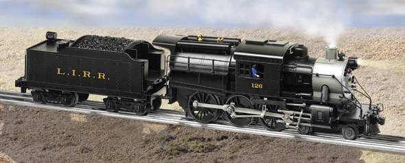 Long Island RR Conventional 4-6-0 Camelback #127 At under $450, this upgraded Camelback steamers mark the lowest priced, scale-sized, Lionel steam locomotives ever offered with the TrainMaster Command Control system. Camelbacks were fast, clean and efficient haulers of the eastern "Anthracite roads." The locomotive's extra-wide firebox allowed it to burn waste anthracite coal that once was thought of as a useless by-product. The unusual design proved successful in both freight and passenger service. The Lionel Camelback steam locomotives feature upgrades from their previous release such as an improved RailSounds sound system with controls conveniently hidden beneath the opening tender water hatch. The cab roof hatch also opens. Lighting RailSounds Smoke Unit SKU: 6-28753 Dimensions: Length: 17 1/2" Gauge: Traditional O Gauge price: 349.99 year: 2003 rail line: Long Island Minimum Radius: O-31 Catalog Year: 2004 Catalog Title: Classic Trains Vol. 1 2004 Road Number: 127 Camelback - Wiring Diagram - 2000 4-6-0 Camelback - Conventional - 9/03 Conventional Features: Transformer controlled forward, neutral and reverse operation RailSounds sound system with steam sounds, synchronized chuffing, crew announcements, brake squeal, steam whistle and bell Magnetic coupler on rear of tender Upgradeable to full TMCC Steam RailSounds Upgrade Kit (each sold separately) FEATURES: Directional lighting including operating headlight and operating tender back-up light Illuminated classification lights on the front of the locomotive Powerful maintenance-free motor with momentum flywheel Two traction tires Puffing smoke unit Die-cast metal locomotive body, pilot and trucks Die-cast metal tender body and trucks Separately applied metal details Opening cab roof hatch Opening tender water hatch reveals RailSounds sound system controls Authentically detailed cab interior Glowing firebox in cab Cab window glass Engineer and fireman figures Manuals Find the latest manuals in our support section. Replacement Parts Buy any replacement parts in our support section. Contact Contact a service station to fix your product