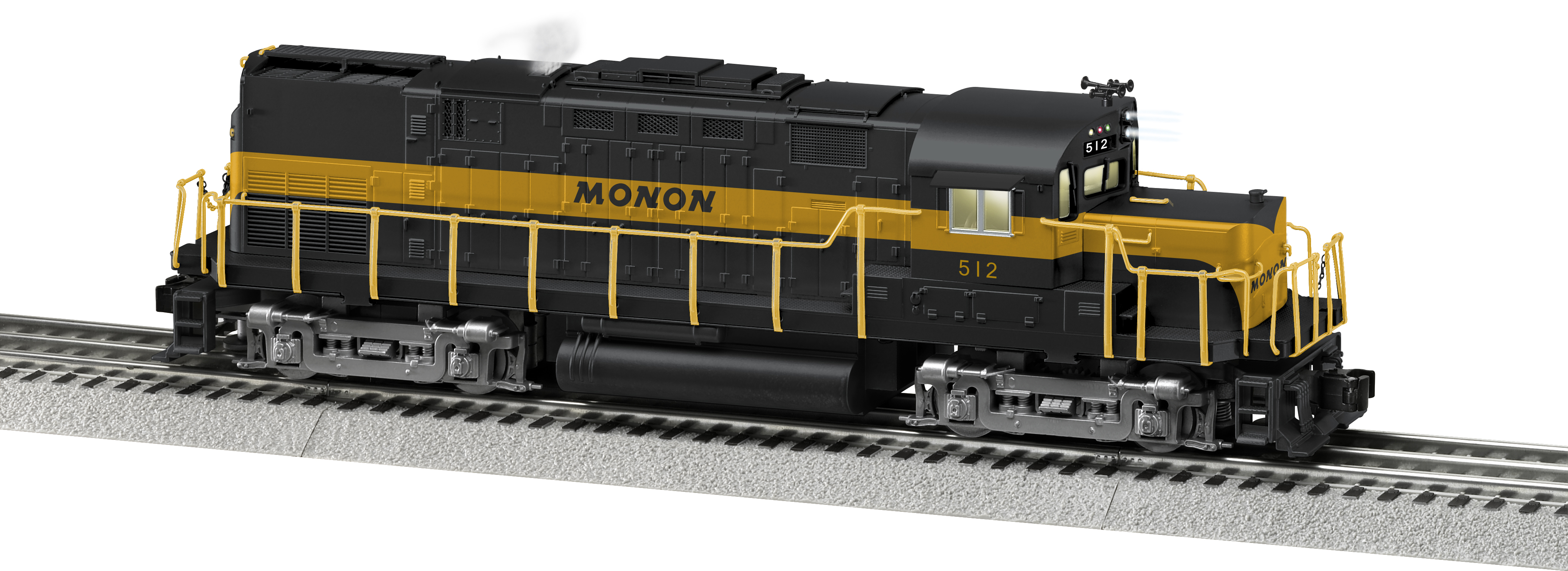 Monon LEGACY Scale C-420 Diesel #512 In the early 1960s, the C-420 joined ALCo’s “Century” line of freighters ElectroCouplers LEGACY Control System Lighting Smoke Unit Odyssey System II LEGACY RailSounds SKU: 6-34746 Dimensions: Length: 15” Gauge: Standard O Scale price: 529.99 year: 2012 rail line: Monon Minimum Radius: O-31 Catalog Year: 2013 Catalog Title: Lionel 2013 Signature Edition Road Number: 512 LEGACY Alco C-420 Manual 6/12 C-420 LEGACY Product Video <b>Legacy Control System</b> equipped – able to run in LEGACY Control mode, in TrainMaster Command Control mode, or in Conventional mode with a standard transformer <b>Odyssey II Speed Control</b> with On/Off switch <b>LEGACY RailSounds</b> sound system featuring:-CrewTalk dialog and TowerCom announcements, each with different scenarios depending on whether the locomotive is in motion or stopped -Six official railroad speeds with CrewTalk dialog-Eight diesel RPM levels-LEGACY "Real-Time Quilling Horn" control with instant response for realistic signature "quilling" and correctly timed warning signals-Single hit or continuous mechanical bell sounds-Sequence Control plays the sound effects of an entire trip, including warning sounds and announcements, based on the movement and speed of the locomotive-Current speed and fuel dialog, refueling sound effects Front and rear <b>ElectroCouplers</b> Dual powerful maintenance-free motors with momentum flywheels Refined Conventional Transformer Control Mode with lower starting speeds Traction tires Fan-driven smoke unit Adjustable smoke output Directional lighting including LED headlights Operating marker lights on front and rear Illuminated number boards Lighted cab interior Die-cast metal trucks, pilots, and fuel tank Metal frame High level of separately applied metal details Detailed cab interior Cab window "glass" Engineer and conductor figures Manuals Find the latest manuals in our support section. Replacement Parts Buy any replacement parts in our support section. Contact Contact a service station to fix your product