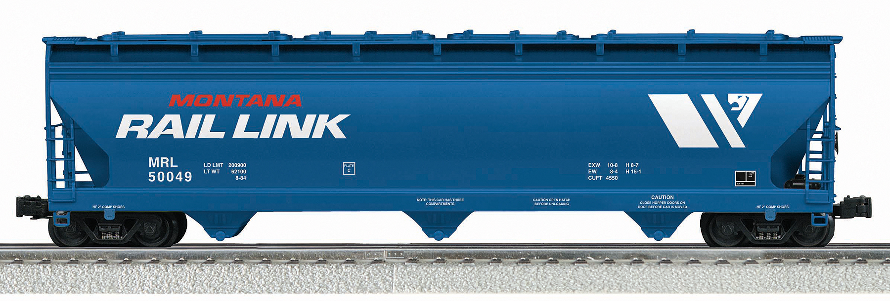 Montana Rail Link 3-Bay Modern Aluminum Hopper #50049 None SKU: 6-22294 Dimensions: Length: 13.75" Gauge: Standard O Scale price: 69.99 year: 2008 rail line: Montana Rail Link Minimum Radius: O-31 Catalog Year: 2008 Catalog Title: K-Line by Lionel 2008 Vol. 2 Road Number: 50049 Features: 1:48 Scale Fully Sprung Die Cast Trucks Die Cast Operating Couplers Add-On Details O-31 Operation Separate Metal Grab Rails & Ladders Prototypical Bay & Brake Detail Prototypical Catwalk & Hatches Manuals Find the latest manuals in our support section. Replacement Parts Buy any replacement parts in our support section. Contact Contact a service station to fix your product