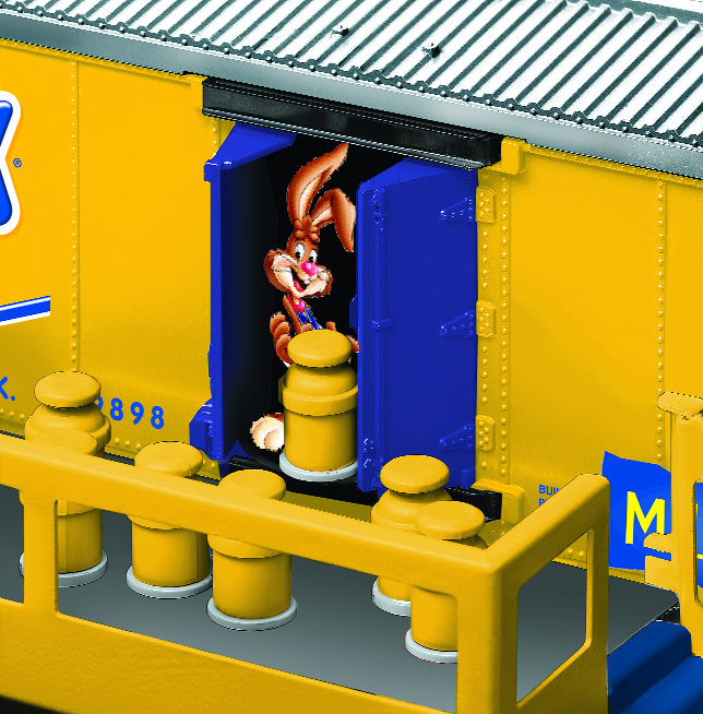 Nestl Nesquik Operating Milk Car Nestl and Nesquik are trademarks of Socit des Produits Nestl S.A., Vevey, Switzerland and are used with permission. Action SKU: 6-19898 Dimensions: Length: 11 1/2” Gauge: Traditional O Gauge price: 129.99 year: 2004 rail line: Nestl Minimum Radius: O-27 Catalog Year: 2005 Catalog Title: Classic Trains Vol. 2 2005 Road Number: None Operating Milk Car and Platform FEATURES: Die-cast metal sprung trucks and operating couplers Nestlé® Nesquik® Bunny unloads cans onto the platform at the touch of a button Remote Control Track section required Seven milk cans and bunny figure Metal platform Manuals Find the latest manuals in our support section. Replacement Parts Buy any replacement parts in our support section. Contact Contact a service station to fix your product