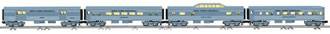 New York Central Streamliner Passenger Car 4-Pack (silver) Capable of negotiating O-27 curves, this 4-Pack can bring passenger service to virtually any O gauge layout. Matching locomotive also available see New York Central 2-8-4 Berkshire (6-28639). Lighting SKU: 6-15180 Dimensions: Length: Set: 53" Single car: 13 1/4" Gauge: Traditional O Gauge price: 199.99 year: 2004 rail line: New York Central Minimum Radius: O-27 Catalog Year: 2004 Catalog Title: Classic Trains Vol. 1 2004 Road Number: None FEATURES: Die-cast metal trucks and operating couplers Authentically detailed interiors Interior lighting Flexible diaphragms between cars Opening doors SET INCLUDES: Baggage car, coach, vista dome, observation car Manuals Find the latest manuals in our support section. Replacement Parts Buy any replacement parts in our support section. Contact Contact a service station to fix your product