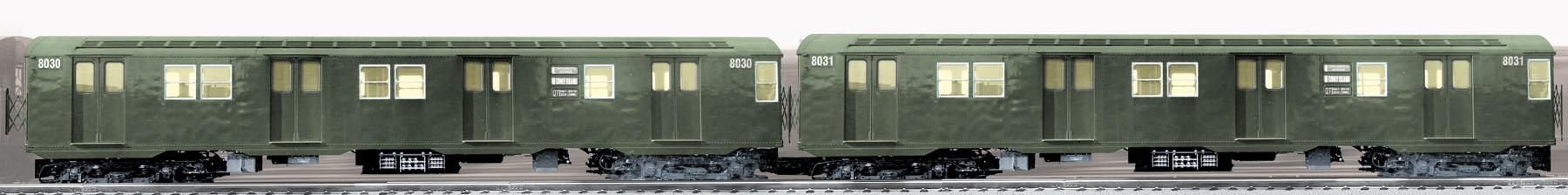 New York City Transit Authority R27 Subway 2-Pack (8030, 8031) None Action LEGACY Control System Lighting SKU: 6-18378 Dimensions: Length: 2-Car Set: Approx. 30"Single car: Approx. 15" Gauge: Standard O Scale price: 359.99 year: 2006 rail line: NYC Transit Minimum Radius: O-72 Catalog Year: 2007 Catalog Title: Lionel 2007 Train Catalog Volume 1 Road Number: 8030, 8031 Subway Add-On Cars - 10/08 None Two non-powered units Lionel LEGACY Control System equipped—able to run in Command Control Mode or in Conventional Transformer Control Mode Infrared wireless system connects each car Close coupling system allows near-prototypical distance between the cars Automatically opening passenger car doors with operating indicator lights Authentically detailed interiors with new passenger and train crew figures Interior lighting in all cars Directional lighting including prototypical marker lights Lighted sign boards All new die-cast metal sprung trucks Minimum Curve: O-72 Manuals Find the latest manuals in our support section. Replacement Parts Buy any replacement parts in our support section. Contact Contact a service station to fix your product