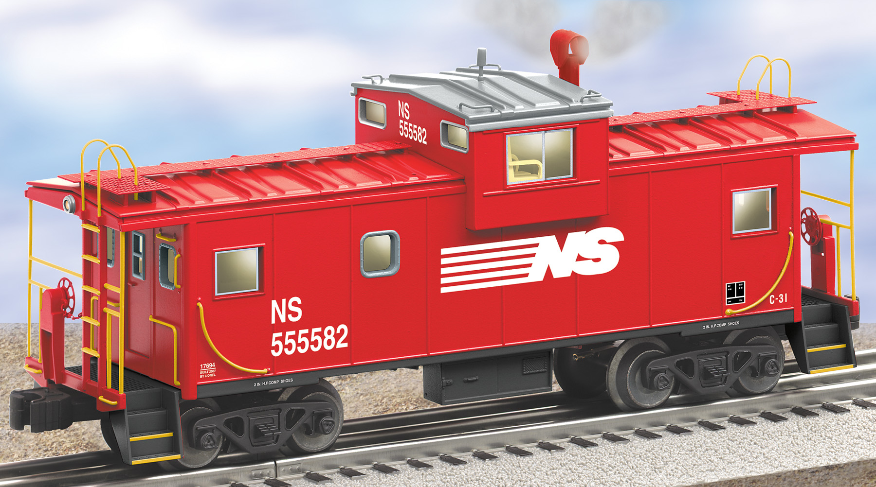 Norfolk Southern Extended Vision Caboose Lighting Smoke Unit SKU: 6-17694 Dimensions: Length: 9 1/2” Gauge: Standard O Scale price: 89.99 year: 2007 rail line: Norfolk Southern Minimum Radius: O-31 Catalog Year: 2006 Catalog Title: Classic Trains Vol. 2 2006 Road Number: None FEATURES: Hidden uncoupling tabs Separately applied metal underframe details Smoke unit with ON/OFF control Train crew figures Detailed and painted interior Rotating bearing caps Interior illumination Opening doors Exterior end lights Interior illumination Manuals Find the latest manuals in our support section. Replacement Parts Buy any replacement parts in our support section. Contact Contact a service station to fix your product