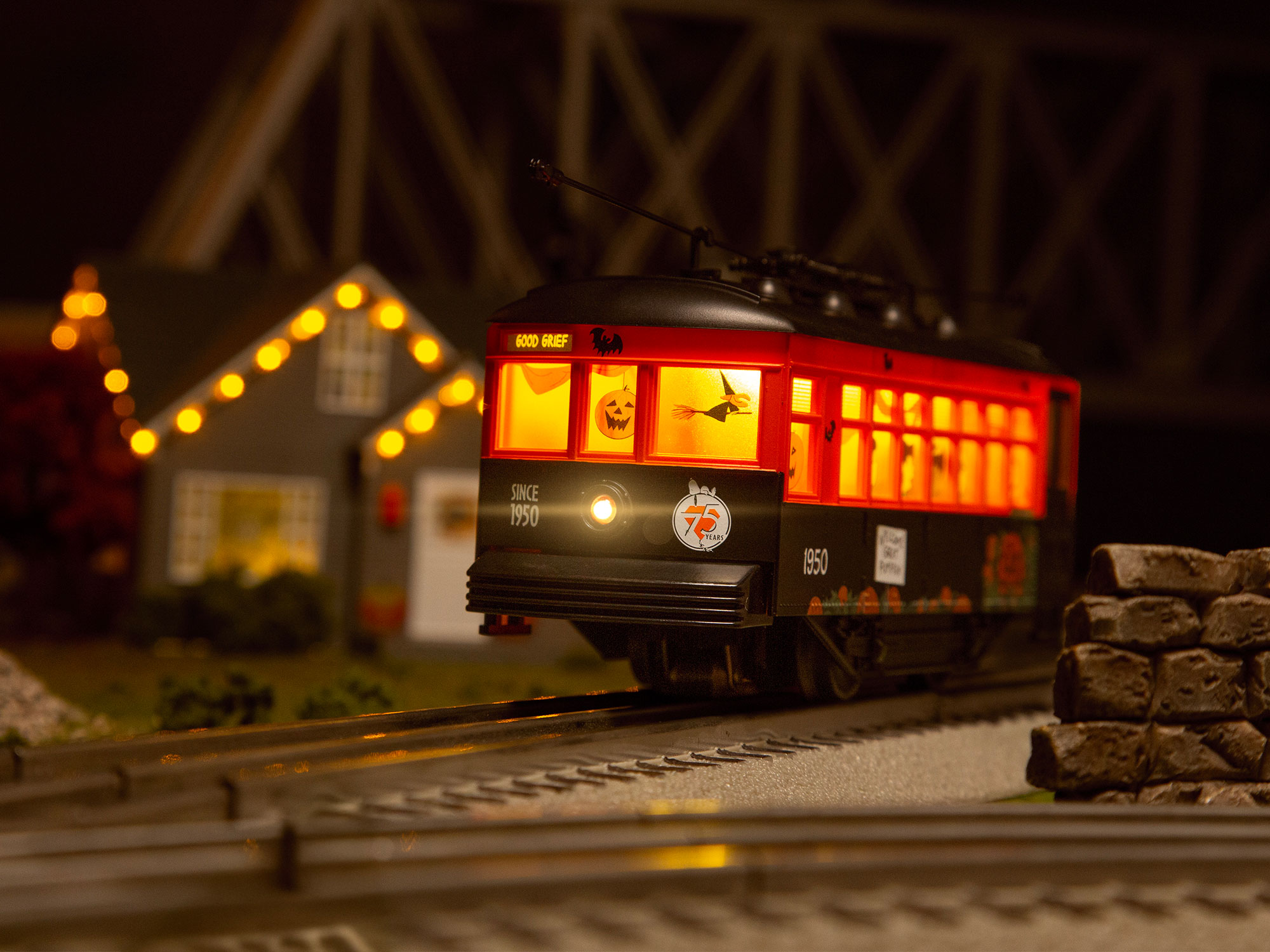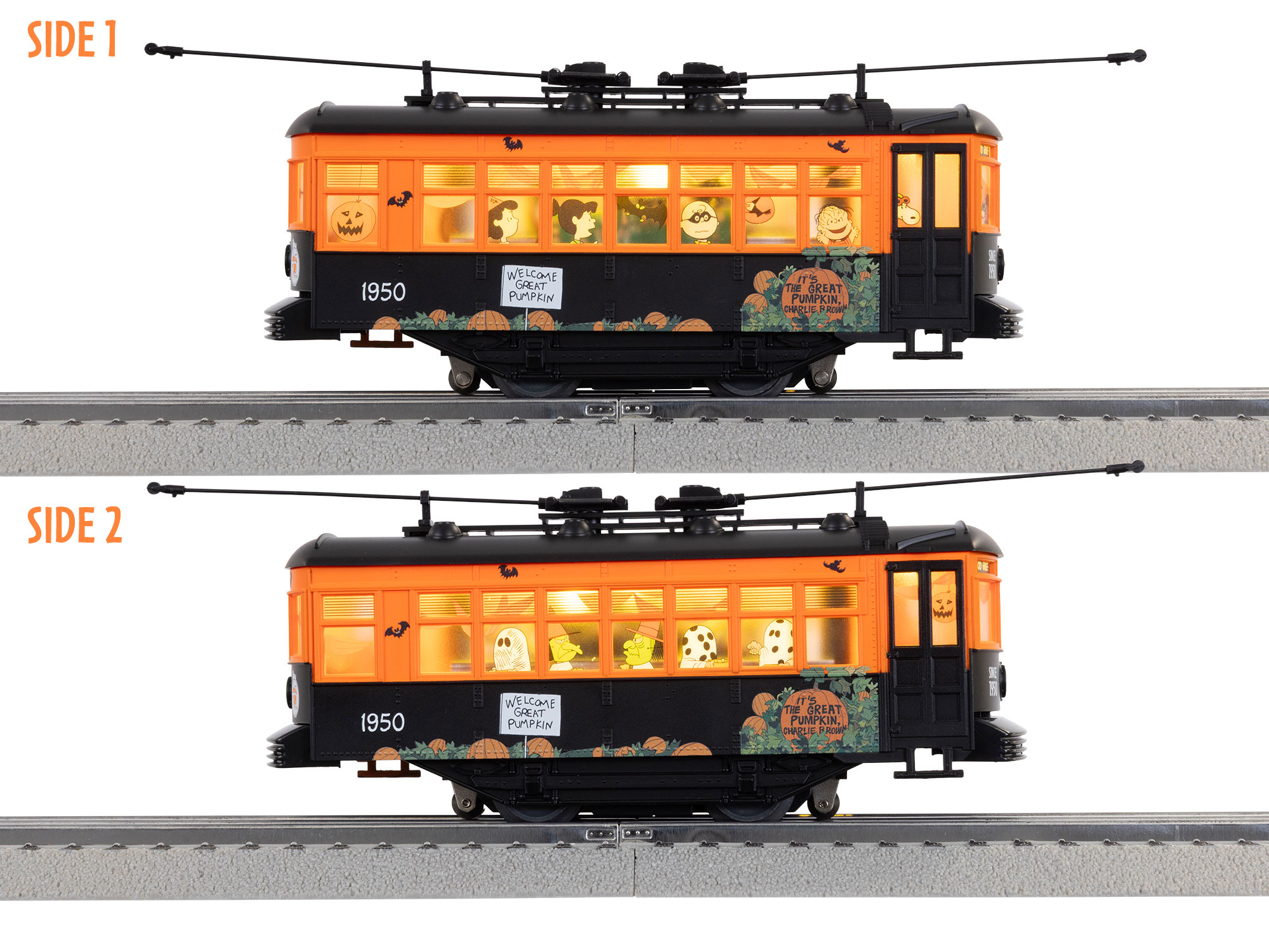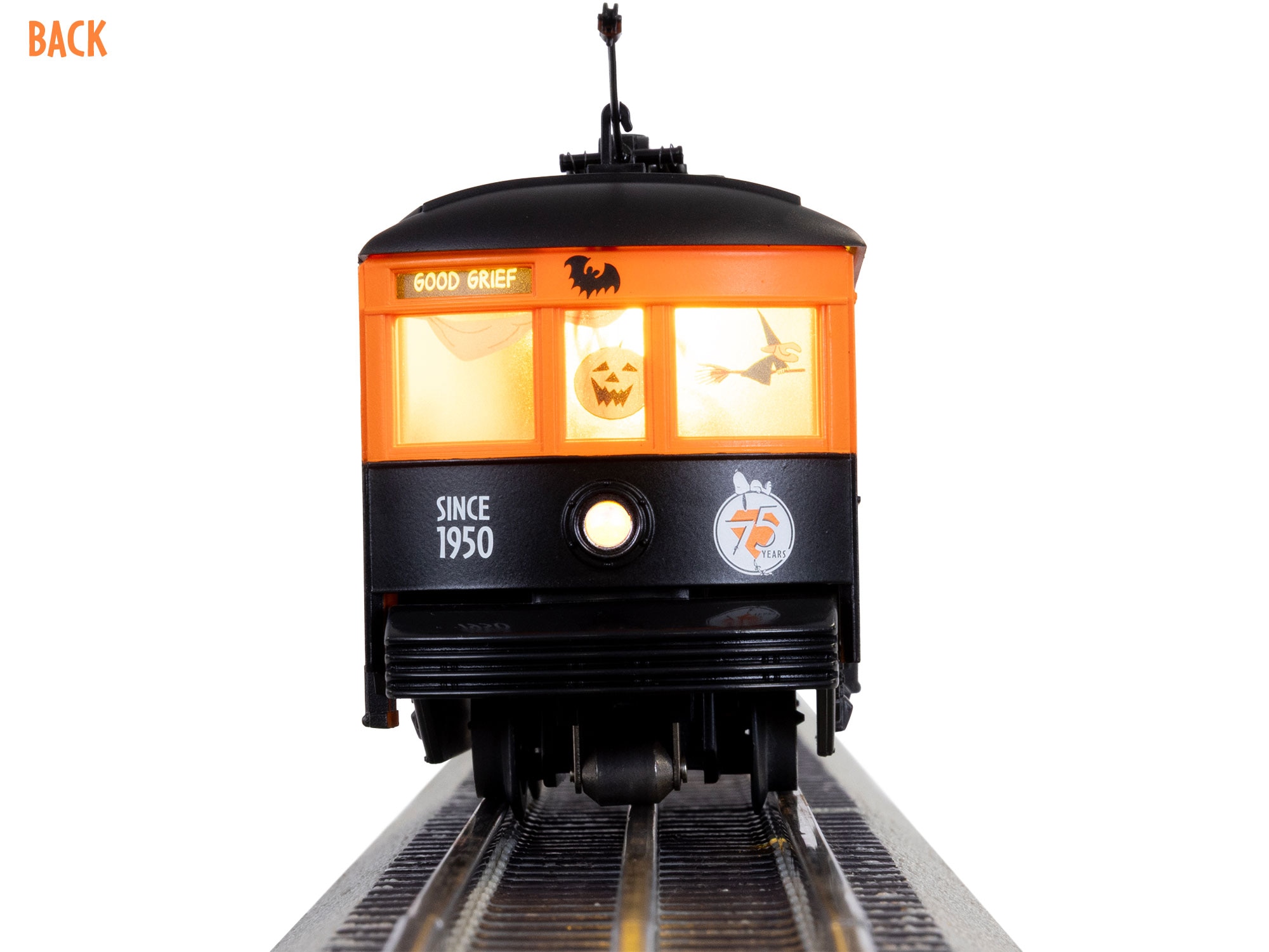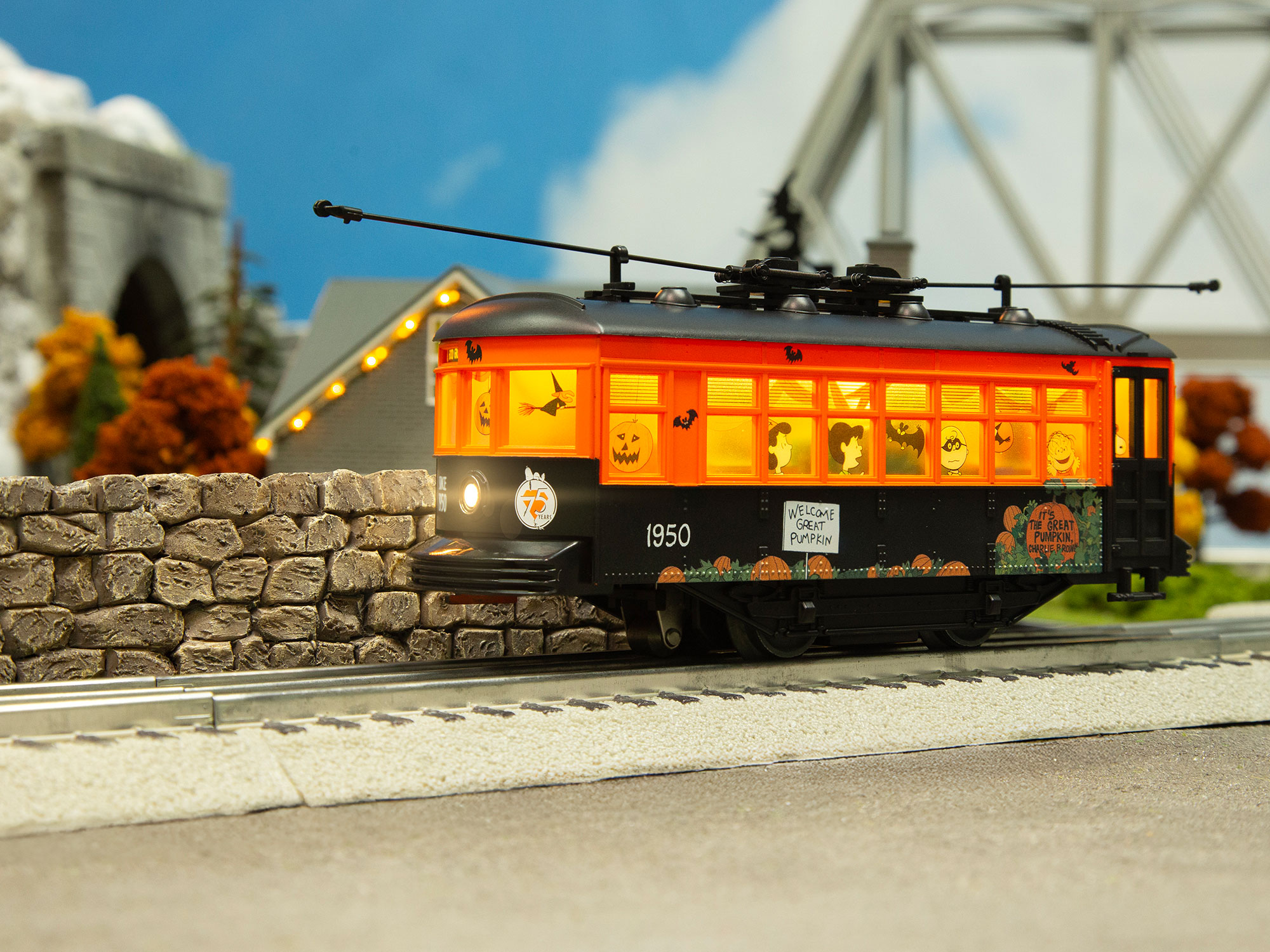 Peanuts Halloween Trolley Celebrate 75 years of PEANUTS™ with our exclusive licensed collection! From classic scenes to timeless characters, these products bring the joy and nostalgia of the beloved comic strip into your home. Join the celebration and bring a little extra happiness to your day with PEANUTS™! © 2025 Peanuts Worldwide LLC Lighting SKU: 2535140 Dimensions: Length: 6 3/4" Gauge: O Gauge Minimum Radius: O27 Power: Electric Engine: Motorized Manuals Find the latest manuals in our support section. Replacement Parts Buy any replacement parts in our support section. Contact Contact a service station to fix your product