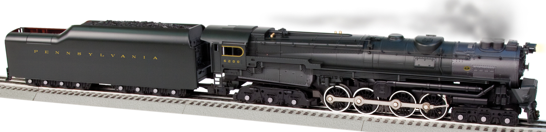 Pennsylvania LEGACY S-2 Turbine Steam Locomotive #6200 (Builder's Scheme) Pennsy InnovationPowered by a 6900 horsepower Westinghouse direct steam turbine engine, the Pennsylvania S-2 from the 1940’s was one of the first attempts at holding on to the age of steam. The constant torque of the rotary turbine eliminated the power loss found in the reciprocating parts of a conventional steam locomotive. Even though the massive 6-8-6 weighed almost one million pounds, the S-2 exceeded the performance of a 6000 horsepower diesel above forty miles per hour. Although it ran well on fast passenger and freight runs, monstrous fuel consumption at low speed and high maintenance costs brought an early retirement to Pennsy’s unorthodox experiment. Lionel presents PRR #6200 equipped with deflectors and also without, as seen in original builder’s photos. Additionally, two locomotives, #671 and #682, are decorated to celebrate the turbine’s history with Lionel as a classic model. ElectroCouplers LEGACY Control System Lighting Smoke Unit Wireless Tether Odyssey System II LEGACY RailSounds SKU: 6-11417 Dimensions: Length: 30” Gauge: Standard O Scale price: 1299.99 year: 2013 rail line: Pennsylvania Minimum Radius: O-72 Catalog Year: 2013 Catalog Title: Lionel 2013 Signature Edition Road Number: 6200 <b>LEGACY Control System</b> equipped – able to run in LEGACY Control mode, in TrainMaster Command Control mode, or in Conventional mode with a standard transformer <b>Odyssey II Speed Control</b> with On/Off switch <b>LEGACY RailSounds</b> sound system featuring:-CrewTalk dialog and TowerCom announcements, each with different scenarios depending on whether the locomotive is in motion or stopped-Six official railroad speeds with Crew-Talk dialog-Turbine sounds synchronized with 32 levels of intensity as the locomotive gains speed-LEGACY "Real-Time Quilling Whistle" control with instant response for realistic signature "quilling" and correctly timed warning signals-Single hit or continuous mechanical bell sounds-Sequence Control plays the sound effects of an entire trip, including warning sounds and announcements, based on the movement and speed of the locomotive-Current speed and fuel dialog, refueling sound effects Powerful maintenance-free motor with momentum flywheels <b>Wireless Tether</b> connection between locomotive and tender <b>ElectroCouplers</b> on rear of tender Directional lighting including operating headlight and back-up light on rear of tender Illuminated classification lights on the front of locomotive Lighted number boards Traction tire Interior illumination in cab Die-cast metal locomotive body, pilot, and trucks Die-cast metal tender body and trucks High level of separately applied metal details Separately applied builder's plates Fan-driven smoke unit Adjustable smoke output Authentically detailed cab interior Flickering firebox in cab Cab window "glass" Engineer and Fireman figures Manuals Find the latest manuals in our support section. Replacement Parts Buy any replacement parts in our support section. Contact Contact a service station to fix your product