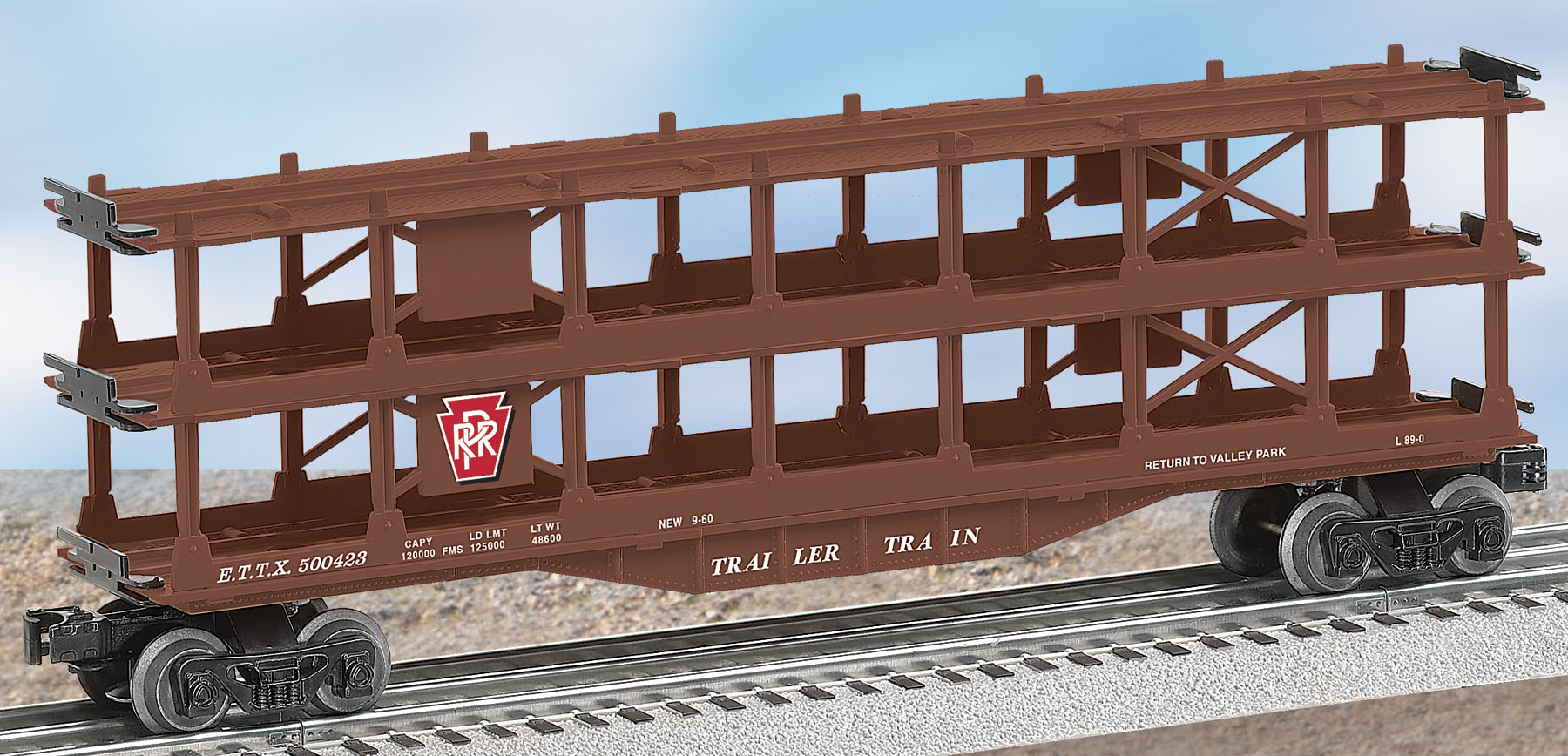 Pennsylvania Three-Tier Auto Carrier None SKU: 6-26099 Dimensions: Length: 13" Gauge: Traditional O Gauge price: 29.99 year: 2007 rail line: Pennsylvania Minimum Radius: O-27 Catalog Year: 2007 Catalog Title: Lionel 2007 Train Catalog Volume 1 Road Number: None Traditional Freight Cars Operating couplers–uncouple cars automatically with a remote-control or uncoupling track section Colorful paint schemes Officially licensed cars Collectible series Perfect additions to Lionel train sets Perfectly sized to match Lionel Traditional Locomotives Minimum Curve: O-27 (Except where noted) Manuals Find the latest manuals in our support section. Replacement Parts Buy any replacement parts in our support section. Contact Contact a service station to fix your product