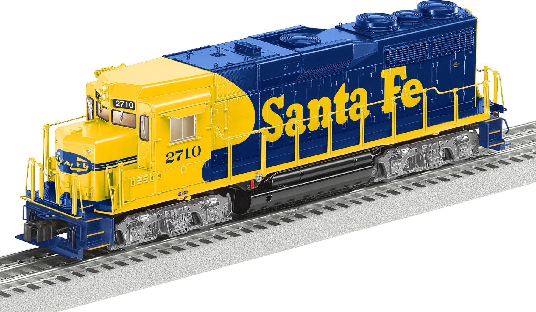 Santa Fe Conventional GP30 Diesel #2710 Nearly 1,000 General Motors GP-30 diesels were built in the early 1960s, serving on rails across the country. Lighting RailSounds SKU: 6-28386 Dimensions: Length: 14 ¼” Gauge: Standard O Scale price: 379.99 year: 2011 rail line: Santa Fe Minimum Radius: O-31 Catalog Year: 2011 Catalog Title: Lionel 2011 Signature Edition Road Number: 2710 GP-30 Diesel Locomotive - Conventional 10/11 GP30 Product Video Transformer controlled forward, neutral, and reverse operation Powerful maintenance-free motor with momentum flywheel Conventional <b>RailSounds</b> sound system Traction tires Operating headlight Lighted number boards (via headlight) Die-cast metal trucks, pilot, and fuel tank Metal frame Select separately applied details Front and rear magnetic couplers Engineer figure Manuals Find the latest manuals in our support section. Replacement Parts Buy any replacement parts in our support section. Contact Contact a service station to fix your product