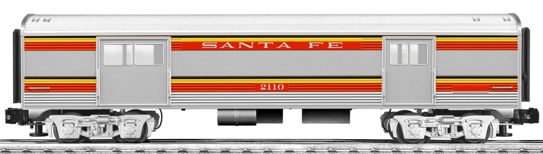 Santa Fe "El Capitan" Streamliner Baggage Car #2103 Santa Fe Add-on Car Lighting SKU: 6-35258 Dimensions: Length: 13” Gauge: Traditional O Gauge price: 69.99 year: 2012 rail line: Santa Fe Minimum Radius: O-27 Catalog Year: 2013 Catalog Title: Lionel 2013 Ready-to-Run Catalog Road Number: 2103 Die-cast metal trucks and operating couplers Authentically detailed interiors Interior illumination in Vista Dome Flexible diaphragms between cars Opening doors Manuals Find the latest manuals in our support section. Replacement Parts Buy any replacement parts in our support section. Contact Contact a service station to fix your product