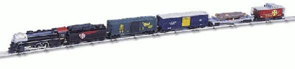 Santa Fe Freight Set (4-6-4 Steam Loco #3458) A train the real Santa Fe Railroad would be envious of, this set offers something for everyone from a new, highly detailed steam locomotive, to a stock car with cattle inside. Powered with Lionel’s premium transformer, packing 80 watts of power, this is the set for which your children will beg. Operating cars, superior detailing, premium decoration, a figure-8 of track, and loads of power – all these things lead to hours of enjoyment for the whole family. All-new die-cast steam locomotive with precision can motor, transformer controlled forward, neutral and reverse, traction tires, operating headlight, puffing smoke unit, separately applied metal handrails and spoked drivers, Detailed molded tender with stamped metal frame, die-cast trucks and operating air whistle, Rolling stock features die-cast sprung trucks, Detailed molded bodies, Sturdy metal wheels, axles and brake wheels, Operating log dump that works at the push of a button, Molded cattle figures inside stock car, 80BW 80 watt transformer/controller, 7 pieces of straight, 1 piece operating straight, and 12 pieces of curved O-27 track with 90 crossover to form figure-8 Action Lighting Smoke Unit Sounds SKU: 6-31916 Dimensions: None Gauge: Traditional O Gauge price: 319.95 year: 2000 rail line: Santa Fe Minimum Radius: O-31 Catalog Year: 2001 Catalog Title: Classic Trains Vol. 2 2001 Road Number: 3458 Santa Fe 0-27 Freight Set - 5/01 Lubrication & Maintenance of R-T-R Locomotive Body Molded Plastic Body Frame Stamped Metal Frame Lighting Headlights Miscellaneous Metal Handrails Smoke Unit Operating Log Car 7 pieces of straight, 1 piece of operating straigh 90 Degree Crossover Track 80BW 80-watt transformer/controller Motion Forward, neutral and reverse Motor Precision Can Motor Sounds Electronic Whistle Traction Traction Tires Trucks Die-cast Metal Trucks Manuals Find the latest manuals in our support section. Replacement Parts Buy any replacement parts in our support section. Contact Contact a service station to fix your product