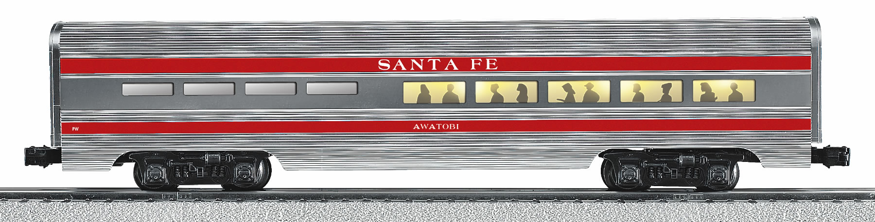 Santa Fe "Super Chief" Aluminum Streamlined Stationsounds Diner "Silver Platter" Matching diner car to compliment (6-31742) #2544W Santa Fe Super Chief Lighting RailSounds TrainMaster Command Control SKU: 6-25449 Dimensions: Length: 15" Gauge: Traditional O Gauge price: 259.99 year: 2005 rail line: Santa Fe Minimum Radius: O-27 Catalog Year: 2005 Catalog Title: Classic Trains Vol. 1 2005 Road Number: Silver Platter HEAVYWEIGHT STATIONS SOUND DINER FEATURES: StationSounds sound system featuring dining reservation calls, arrival/departure announcements and even the "clickety-clack" of the cars as they roll down the rails Manuals Find the latest manuals in our support section. Replacement Parts Buy any replacement parts in our support section. Contact Contact a service station to fix your product