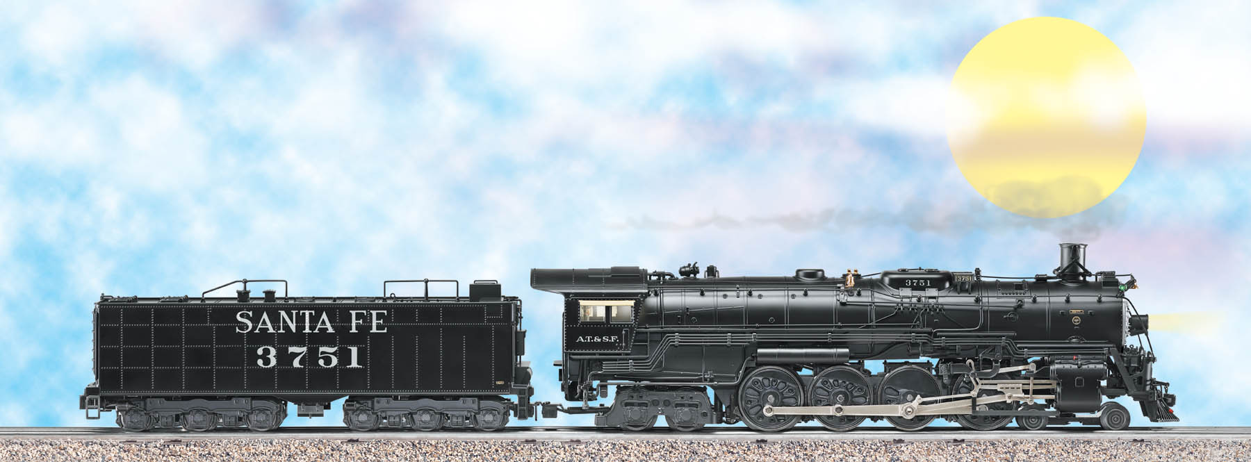 This all-new Lionel locomotive marks the first O gauge model of this steam survivor, Santa Fe #3751. First built in 1927, the 4-8-4 Northern type hauled the signature passenger trains of the Atchison, Topeka & Santa Fe Railway. After a distinguished 26 years of service and later decades as a dormant park display, Santa Fe #3751 was brought back to life by the San Bernardino Railroad Historical Society. The big Northern has made regular excursion trips since 1991.