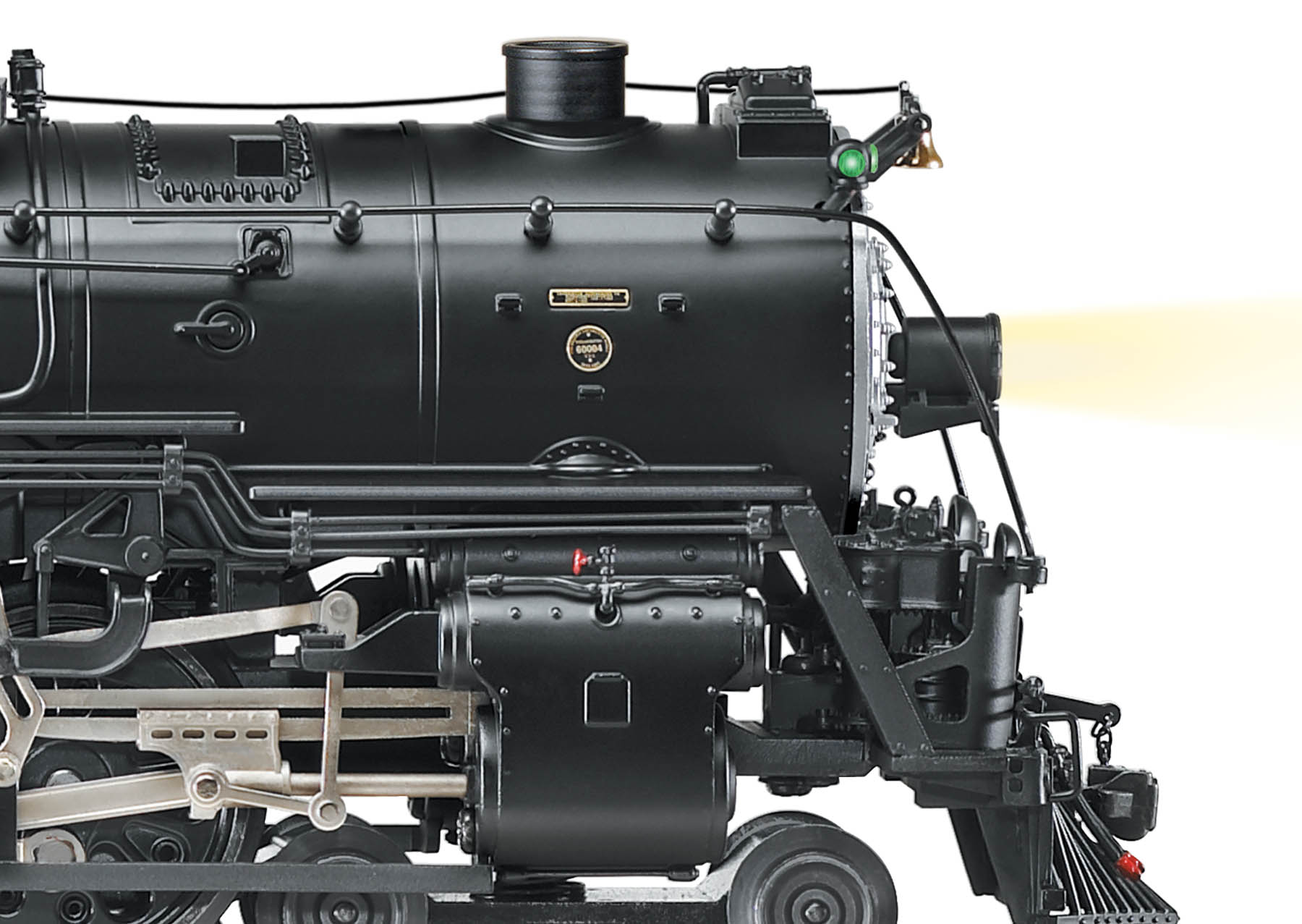 Including the RailSounds 5.0 sound system, this scale-sized locomotive provides the latest features and accurate detailing. From the turret valves to the fully round air cylinders under the running boards, most of the metal piping and appliances are separately applied, even the sand lines. This new locomotive even includes three different press-in smokestacks—a standard straight stack, an extended telescopic stack and an extended "smoke bonnet" stack.