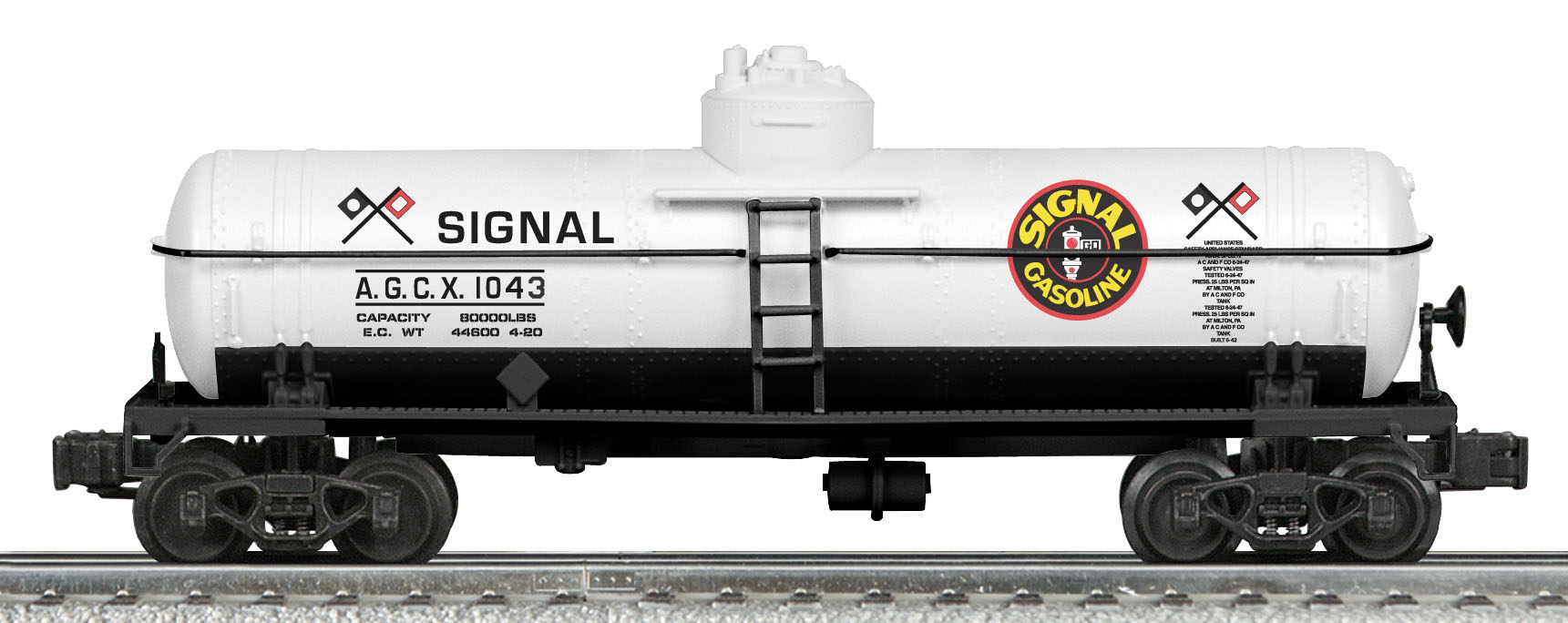 Signal Oil Company Single-Dome Tank Car O GAUGE FREIGHT SKU: 6-22618 Dimensions: None Gauge: Traditional O Gauge price: 39.99 year: 0 rail line: Signal Oil Minimum Radius: O-27 Catalog Year: 2010 Catalog Title: Lionel Signature Edition Volume One 2010 Road Number: None Fully-sprung die-cast trucks Operating die-cast couplers Manuals Find the latest manuals in our support section. Replacement Parts Buy any replacement parts in our support section. Contact Contact a service station to fix your product