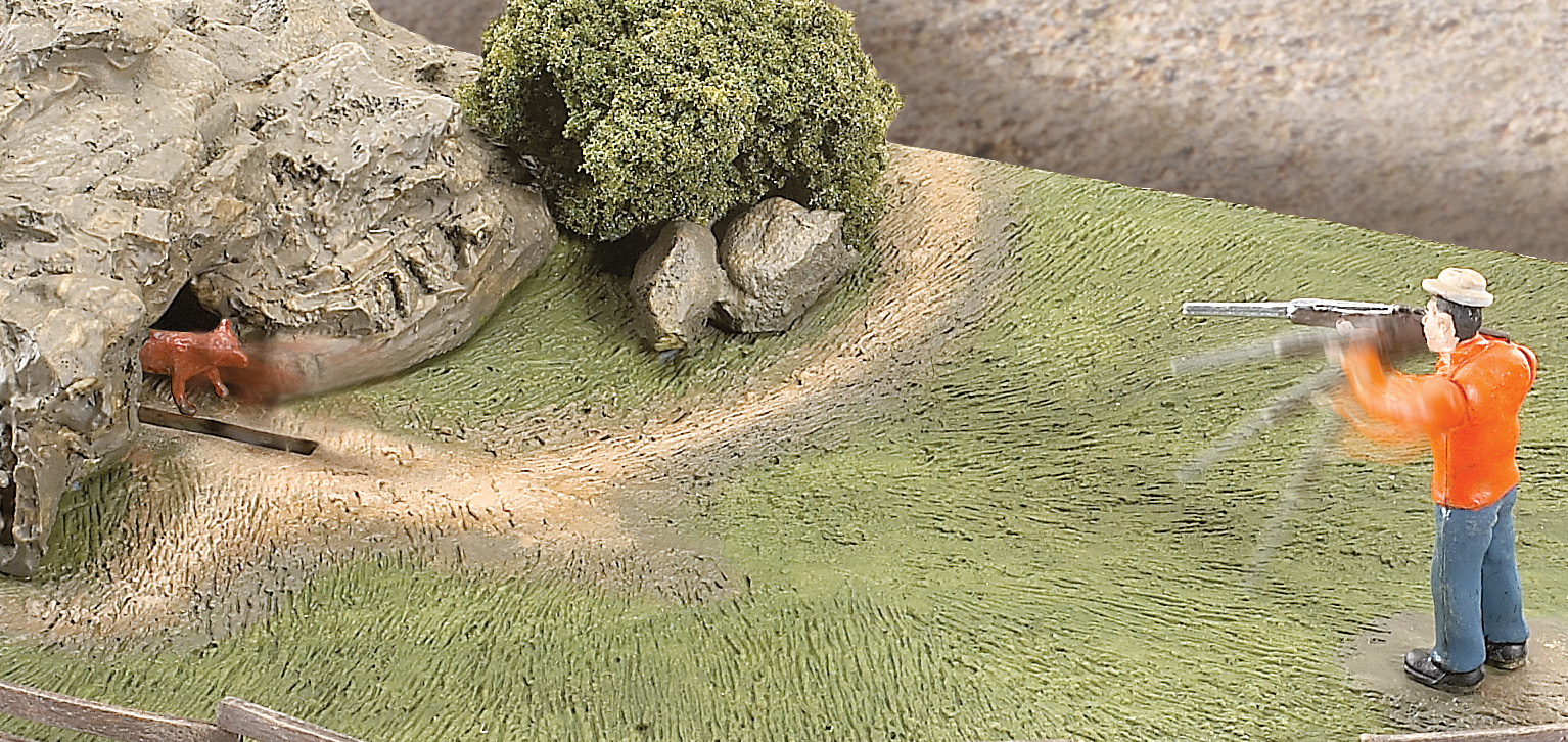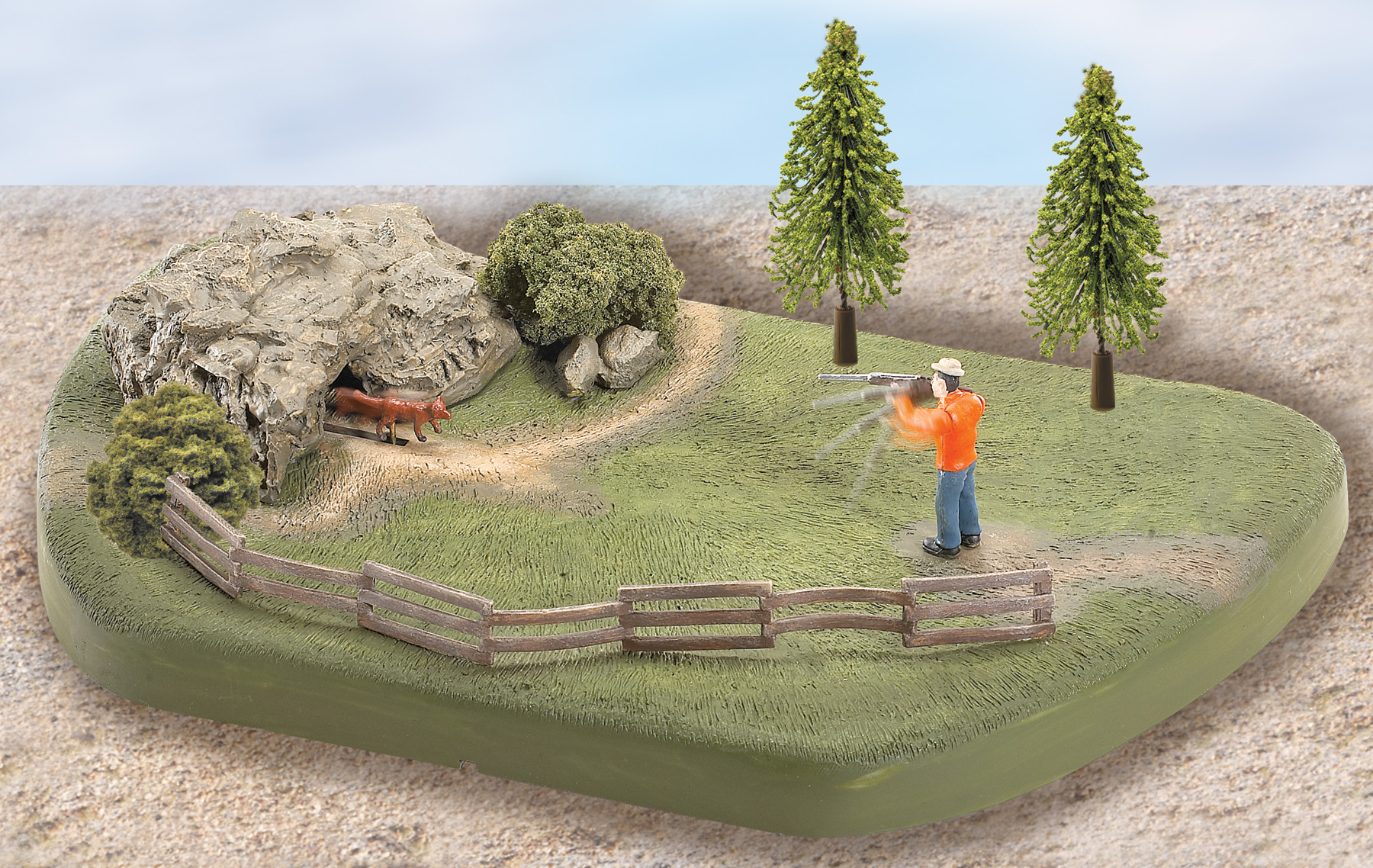 Sly Fox & The Hunter Our sly fox always outsmarts the patient hunter! Watch as the fearless woodsman sets his sights only to be outwitted again as Sly Fox takes refuge inside his cozy den. Creatures of the woodlands have nothing to fear from this bumbling hunter. Action SKU: 6-34149 Dimensions: 6 1/4” x 10 3/8” Gauge: Traditional O Gauge price: 79.99 year: 2005 rail line: None Minimum Radius: None Catalog Year: 2007 Catalog Title: Lionel 2007 Train Catalog Volume 1 Road Number: None Sly Fox & The Hunter - 11/04 FEATURES: Fox emerges from his den, hunter begins to take aim, and fox retreats just in time Manuals Find the latest manuals in our support section. Replacement Parts Buy any replacement parts in our support section. Contact Contact a service station to fix your product
