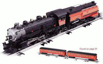 Southern Pacific TMCC Scale 4-4-2 E-6 Atlantic #3000 Locomotive #3000 led a long life in the service of the Southern Pacific. The steamer was originally built around the turn of the century as an A-3 class and later rebuilt as an A-6 class by the SP at their Sacramento Shops in 1927. This workhorse spent its last years during the 1940's in the glorious red and orange livery of the SP's signature passenger service as it led the Sacramento Daylight which connected to the famous San Joaquin Daylight at Lathrop, California. It's hard to resist the crisp detail and decoration of this beautiful locomotive, not to mention the power of TrainMaster Command Control. Add a 2-pack of matching SP Daylight Madison cars and you'll have one blazing passenger consist! ElectroCouplers Lighting Odyssey System RailSounds Smoke Unit TrainMaster Command Control Wireless Tether SKU: 6-28070 Dimensions: <p>Length 20 1/2"</p> Gauge: Traditional O Gauge price: 649.95 year: 0 rail line: Southern Pacific Minimum Radius: O-31 Catalog Year: 2002 Catalog Title: Classic Trains Vol. 1 2002 Road Number: 3000 4-4-2 Atlantic SP & NP Steam Loco & Tender - 4/01 Southern Pacific 4-4-2 Atlantic Pictorial Body Die-cast Body Control Trainmaster Command Control Odyssey System for Speed Control Couplers Electrocouplers Lighting Headlights Directional Lighting Miscellaneous Metal Handrails Smoke Unit Red Firebox Glow Motor Precision can motors with momentum flywheel Sounds RailSounds Traction Traction Tires Trucks Die-cast Metal Trucks Manuals Find the latest manuals in our support section. Replacement Parts Buy any replacement parts in our support section. Contact Contact a service station to fix your product