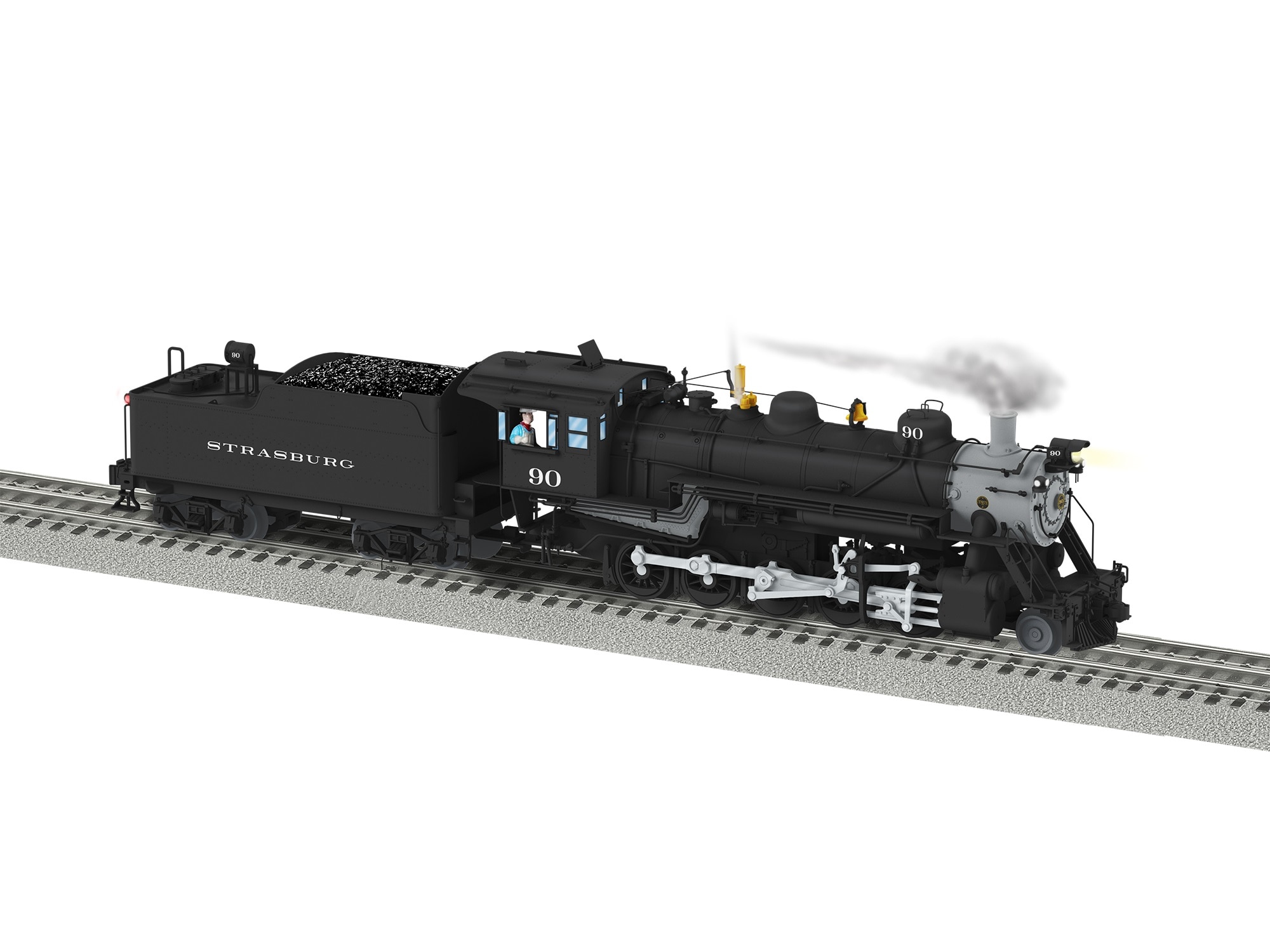 Strasburg LEGACY 2-10-0 #90 (2000s) In the 1920s, Baldwin offered a standard light Decapod designed to meet the needs of smaller railroads in search of powerful locomotives with proper weight distribution suitable for lighter rail. Despite selling only a small handful to short lines, a surprising number of this group can still be seen today. None of them however are as well known, nor run nearly as long as Great Western / Strasburg Railroad No. 90. Built in 1924 for the Great Western, 90 spent her first 43 years hauling sugar beets in Colorado. In 1967, the Strasburg Railroad purchased the locomotive and relocated her to Pennsylvania. For over 50 years, No. 90 has been the regular power on the railroad's passenger excursions as well as revenue freight runs. Lovingly and meticulously maintained on one of North Americas oldest and most popular railroads, No. 90 has introduced millions of people to the sights, sounds and smells of a steam locomotive. Long overdue, No. 90 is now available for the first time in O scale as Lionel's newest brass-hybrid locomotive. Combining the high detail of handcrafted brass with the reliability and features of our die-cast LEGACY steam, this model offers the best of both worlds. Lionel will produce three variations of this locomotive to capture changing details through the decades. This first release includes both original and current variations. The extended smokebox years will be covered in a future release. As-delivered versions will also include similar sister locomotives for the Osage and Seaboard Air Line. (Additional roads will be offered in the future as well.) Strasburg paint scheme variations include some of the most popular from the 1990s to the mid-2000s - and a special return to 1967 from a photo charter in 2020. Lionel would like to thank the many men and women at the Strasburg Railroad for their help in making this model possible and indeed for their tireless efforts to keep history alive. ElectroCouplers LEGACY Control System Lighting RailSounds Smoke Unit Sounds TrainMaster Command Control Wireless Tether Odyssey System II SKU: 2231030 Dimensions: 19" Gauge: O Gauge year: 2022 rail line: Strasburg Minimum Radius: O54 Power: Electric Road Number: 90 Engine: Steam Manuals Find the latest manuals in our support section. Replacement Parts Buy any replacement parts in our support section. Contact Contact a service station to fix your product