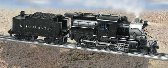 Susquehanna TMCC 4-6-0 Camelback #30 At under $450, this upgraded Camelback steamers mark the lowest priced, scale-sized, Lionel steam locomotives ever offered with the TrainMaster Command Control system. Camelbacks were fast, clean and efficient haulers of the eastern "Anthracite roads." The locomotive's extra-wide firebox allowed it to burn waste anthracite coal that once was thought of as a useless by-product. The unusual design proved successful in both freight and passenger service. The Lionel Camelback steam locomotives feature upgrades from their previous release such as an improved RailSounds sound system with controls conveniently hidden beneath the opening tender water hatch. The cab roof hatch also opens. ElectroCouplers Lighting RailSounds Smoke Unit TrainMaster Command Control SKU: 6-28758 Dimensions: Length: 17 1/2" Gauge: Traditional O Gauge price: 449.99 year: 2003 rail line: Susquehanna Minimum Radius: O-31 Catalog Year: 2004 Catalog Title: Classic Trains Vol. 1 2004 Road Number: 30 4-6-0 Camelback - TMCC - 9/03 FEATURES: Directional lighting including operating headlight and operating tender back-up light Illuminated classification lights on the front of the locomotive Powerful maintenance-free motor with momentum flywheel Two traction tires Puffing smoke unit Die-cast metal locomotive body, pilot and trucks Die-cast metal tender body and trucks Separately applied metal details Opening cab roof hatch Opening tender water hatch reveals RailSounds sound system controls Authentically detailed cab interior Glowing firebox in cab Cab window glass Engineer and fireman figures TMCC FEATURES: TrainMaster Command Control equipped—able to run in Command Control Mode or in Conventional Transformer Control Mode RailSounds sound system with CrewTalk communication, TowerCom announcement and DynaChuff synchronized chuffing ElectroCoupler on rear of tender Manuals Find the latest manuals in our support section. Replacement Parts Buy any replacement parts in our support section. Contact Contact a service station to fix your product
