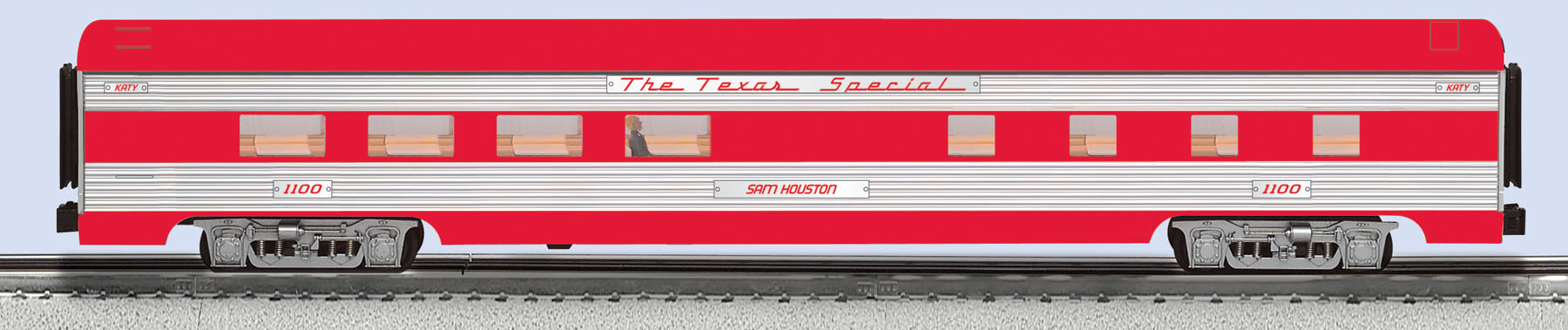 Texas Special 21" Aluminum Stationsounds Diner "Sam Huston" Expand the Texas Special Set (6-31755) with a 2-Pack and StationSounds Diner to make a striking consist. LEGACY Control System Lighting RailSounds SKU: 6-25496 Dimensions: Length: Single Car: 21" Gauge: Standard O Scale price: 299.99 year: 2007 rail line: Texas Special Minimum Radius: O-54 Catalog Year: 2007 Catalog Title: Lionel 2007 Train Catalog Volume 2 Road Number: Sam Huston Texas Special Diner Car - 1/08 FEATURES: Die-cast metal sprung trucks with rotating bearing caps and operating couplers with hidden uncoupling tab Diaphragms between cars Extruded aluminum bodies with flush fitting windows Metal frames Authentically detailed and painted interiors Passenger figures Interior lighting with ON/OFF control STATIONSOUNDS SOUND SYSTEM FEATURES: Accessible with the Lionel LEGACY Control System, TMCC, or a conventional transformer Custom recordings featuring multiple characters allow you to recreate an entire rail journey from departure to arrival at your final destination Arrival/departure announcements, dining reservation calls, and other en route dialog "Clickety-clack" of the cars as they roll down the rails Manuals Find the latest manuals in our support section. Replacement Parts Buy any replacement parts in our support section. Contact Contact a service station to fix your product