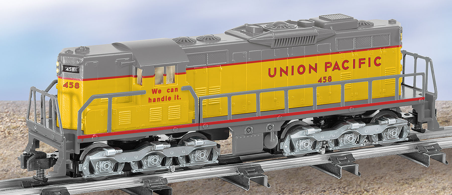Union Pacific SD9 Diesel #458 New for 2007, the SD9 diesel locomotive appears in Union Pacific colors and in classic American Flyer blue and yellow. Lighting SKU: 6-48066 Dimensions: Length: 10 3/4" Gauge: American Flyer/S Gauge price: 274.99 year: 2007 rail line: Union Pacific Minimum Radius: None Catalog Year: 2007 Catalog Title: Lionel 2007 Train Catalog Volume 1 Road Number: None FEATURES: Die-cast metal 6-wheel trucks Die-cast metal frame Transformer controlled forward, neutral, and reverse operation Powerful maintenance-free motor Interior illumination Traction tires Manuals Find the latest manuals in our support section. Replacement Parts Buy any replacement parts in our support section. Contact Contact a service station to fix your product