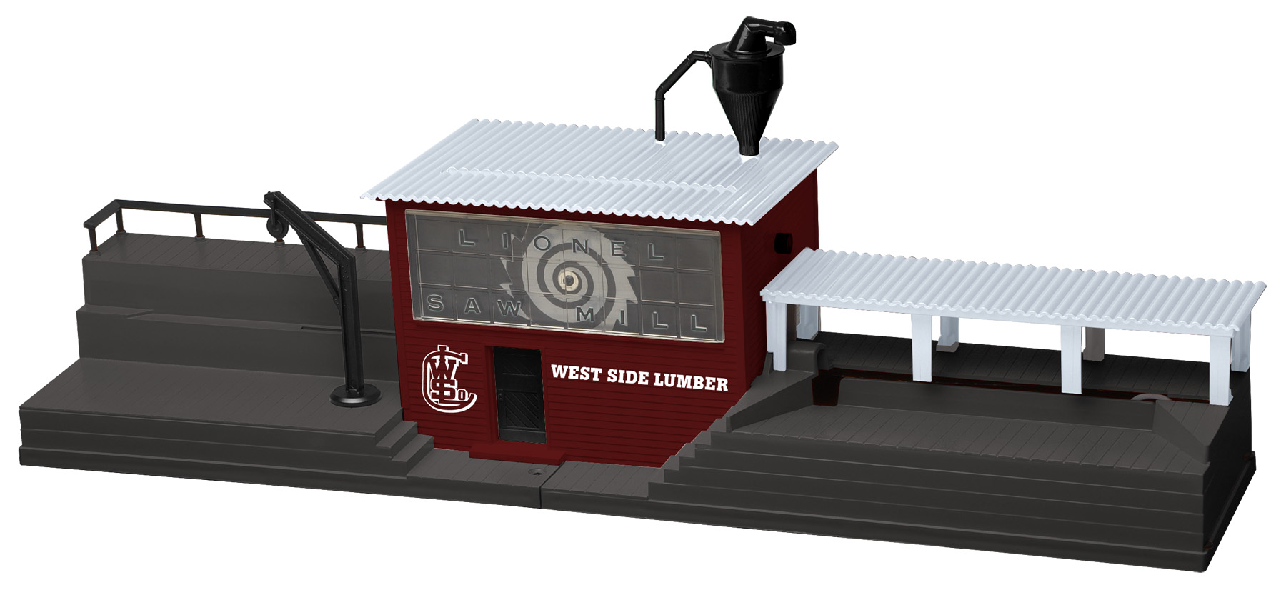 See the logs enter into the sawmill by conveyor belt and watch in amazement as fresh wood planks come out of the other side. Safety strobe lights on both sides warn workers to be careful around the action. Together with your favorite Lionel log dump cars, the Sawmill can complete a classic logging railroad empire.