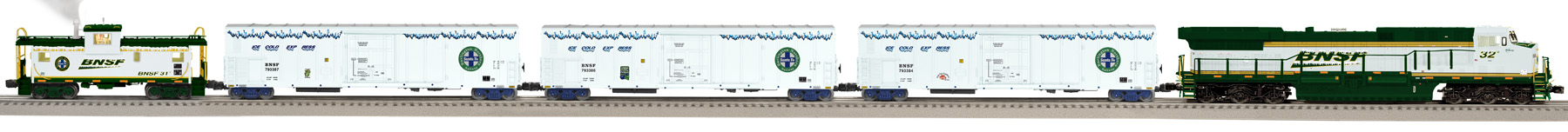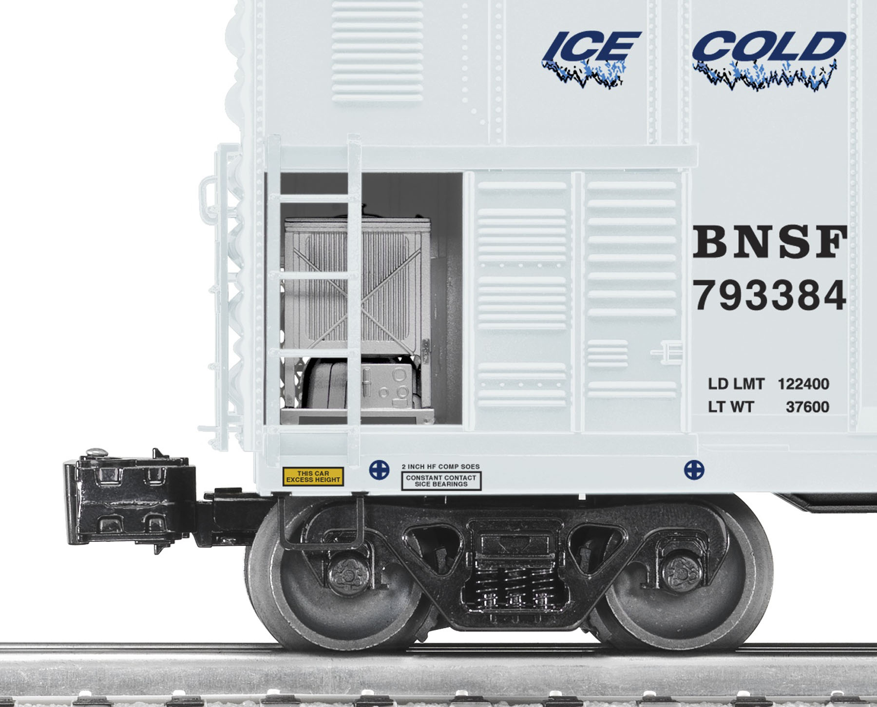 The scale BNSF AC6000 diesel that leads the BNSF Ice Cold Express comes equipped with Lionel’s state-of-the-art features, including LEGACY Command Control, LEGACY RailSounds, Odyssey II speed control, and a wide variety of lighting options including ground lights and oscillating ditch lights.