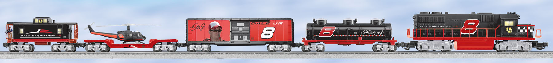 The face of NASCAR's new generation, Dale Earnhardt, Jr. is featured in an exciting new ready-to-run train set from Lionel. Dale Jr. won his first race in only his 12th career start, and in 2004 he captured the prestigious Daytona 500. He has recorded an impressive 16 Nextel Cup wins in addition to his two NASCAR Busch Series Championships. Now from Lionel...a train set that's as dynamic as the driver who inspired it. Dale Earnhardt Jr. and Dale Earnhardt Inc. trademarks, trade dress, names, likenesses and copyrights are used under the authorization of Dale Earnhardt Inc. NASCAR® is a registered trademark of The National Association for Stock Car Auto Racing Inc.