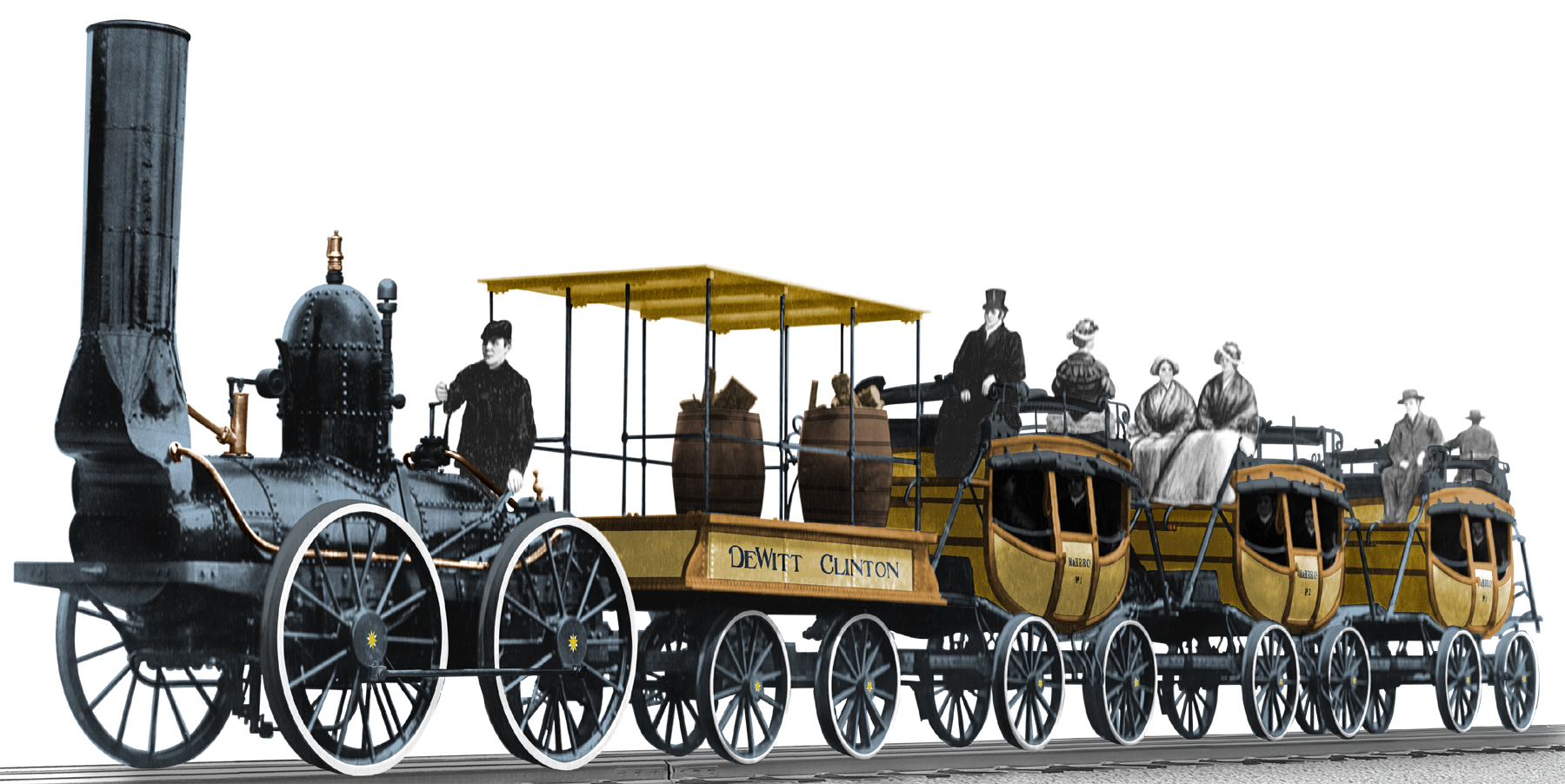In 1893, a replica of the Dewitt Clinton was built by New York Central and displayed at the Columbia Exposition inChicago. In 1939 the famous steam locomotive was shown again at the New York World’s Fair. Presently, the colorful DeWitt Clinton replica locomotive and coaches are on display at the Ford Museum in Dearborn, Michigan.