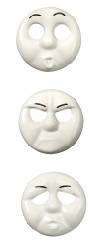 - Thomas the Tank Engine with three changeable faces, Annie, Clarabel, three play figures, 12 pieces of curved Large Scale track, 40 watt transformer