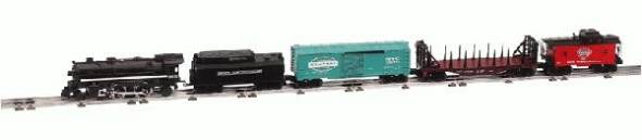 - Rolling stock features sturdy metal wheels and axles, Detailed molded bodies, trucks, frames, brake wheels and operating couplers, Opening doors on boxcar.