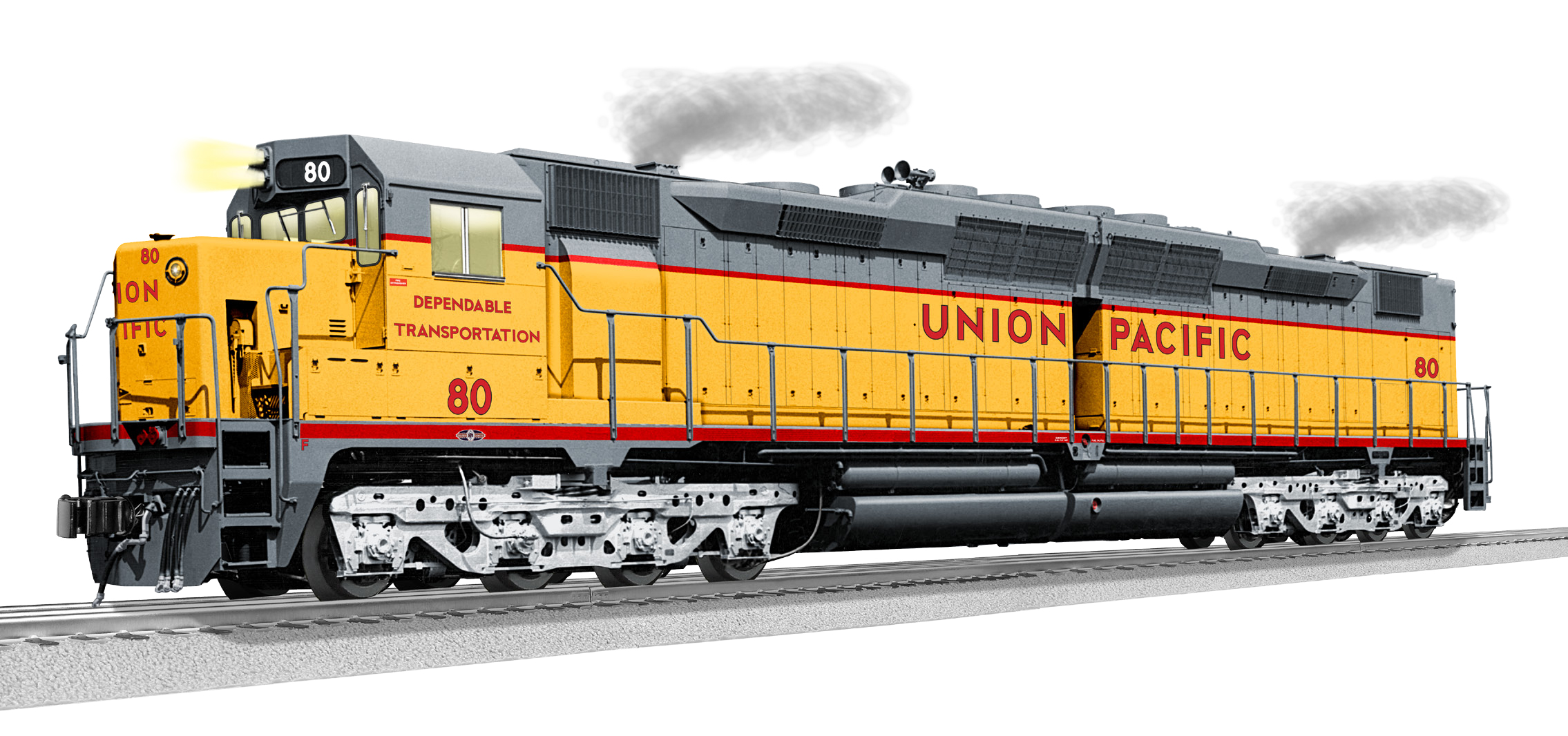 Originally GM configured the consist to run as a four-unit set, with two 5000 h.p. DD35 booster units sandwiched between two 1500 h.p. GP35 diesels. What an incredible sight it must have been in 1963 to see this prototype set of engines on its nationwide promotional tour, all four units decorated boldly in red and white stripes! Union Pacific was delighted with the performance of these engines and immediately bought 27 of them in 1964, along with GP35 diesels to complete the unit sets.